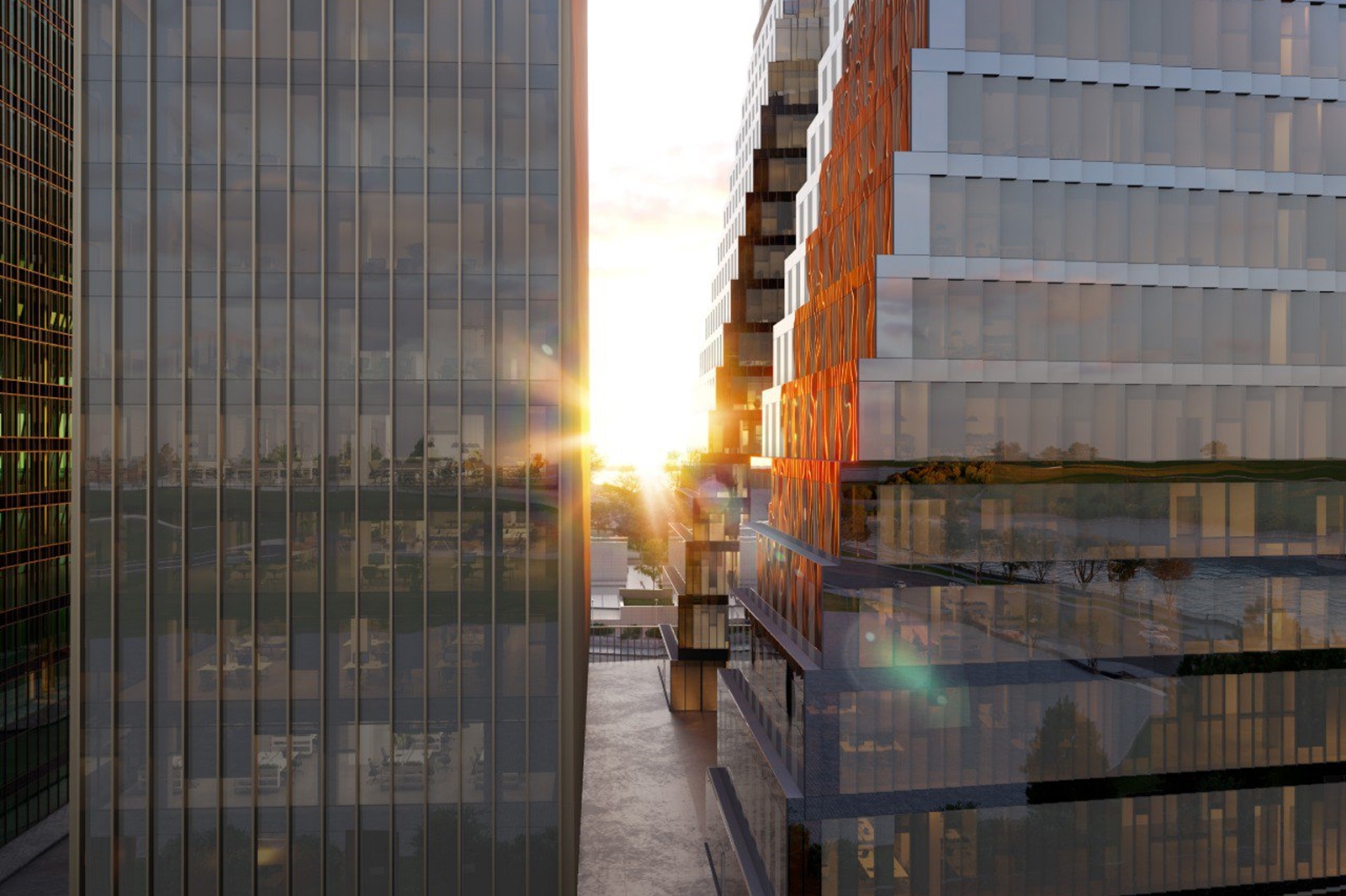 «Комплекс будет состоять из двух зданий: Л-образного корпуса А и линейного корпуса Б. Их расположение друг к другу создает общественное пространство во внутреннем дворе. Здесь планируется благоустроить зеленую зону с цветниками, высадить деревья и установить малые архитектурные формы. В каждом корпусе будет 18 наземных этажей. Офисы займут пространства со второго по последний этаж, а на первом разместятся просторные лобби, кафе и магазины», – сказал Владислав Овчинский.