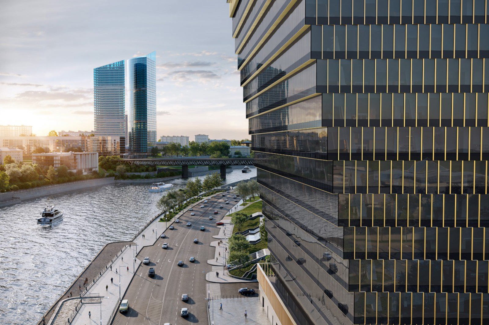 Новый бизнес-центр дополнит архитектурный облик делового квартала «Москва-Сити». Здания облицуют сплошным витражным остеклением, а обращенный к Москве-реке главный фасад корпуса А будет ярусным. Нависающие друг над другом ступени каждого этажа создадут эффект перевернутой пирамиды.