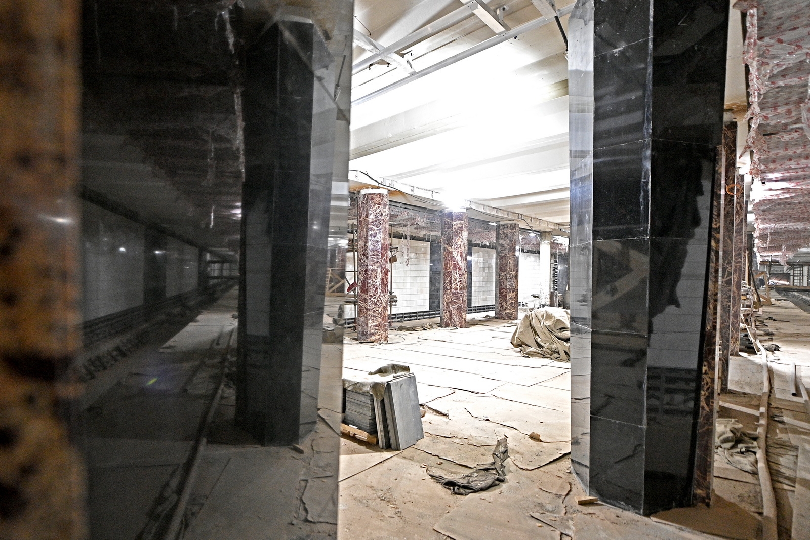 «Готовы восьмигранные колонны из красно-коричневого мрамора и платформенный участок, покрытый серым гранитом. В западном торце продолжается строительство нового вестибюля с переходом на Серпуховско-Тимирязевскую линию», – уточнил Сергей Жуков.