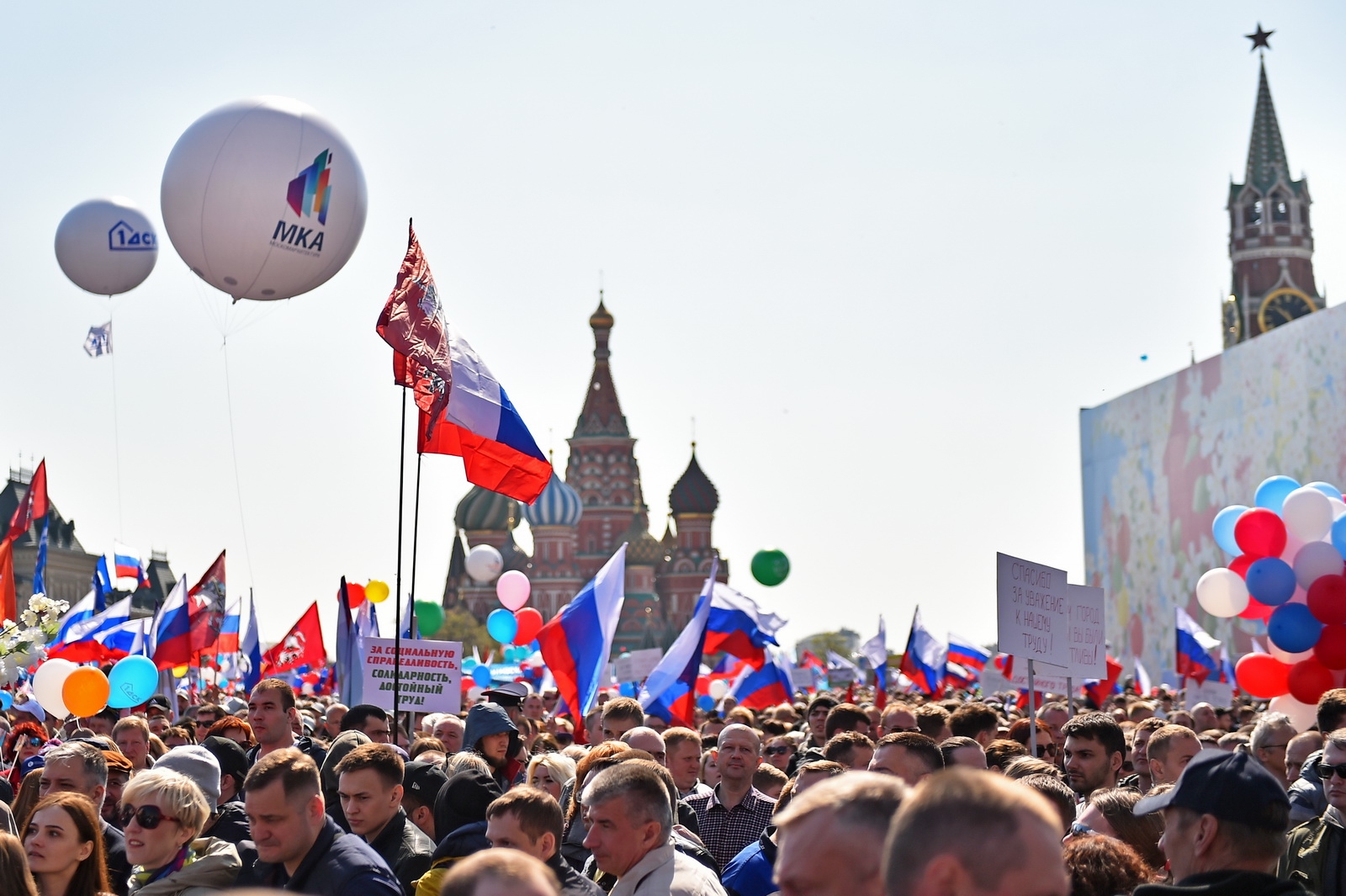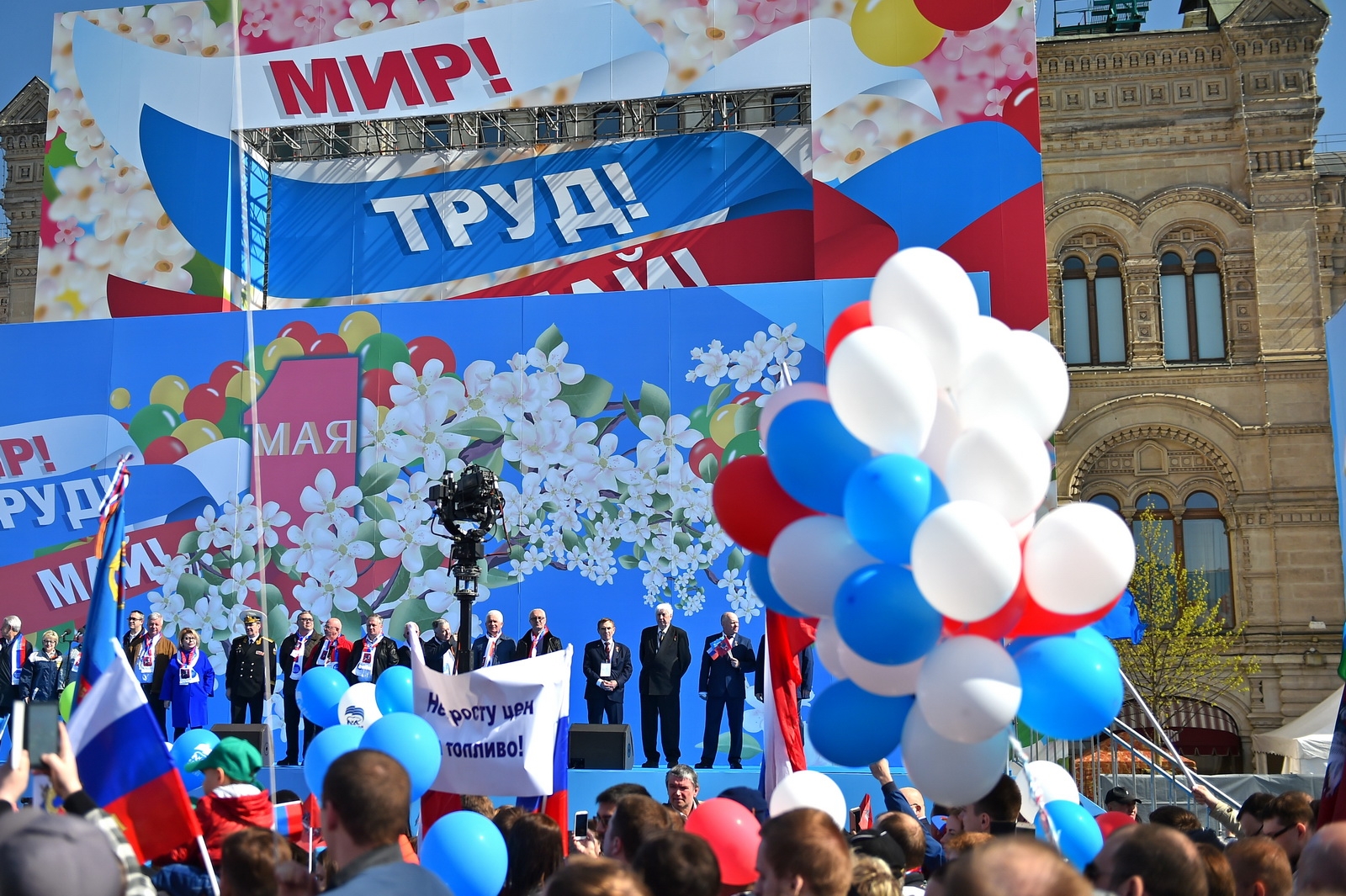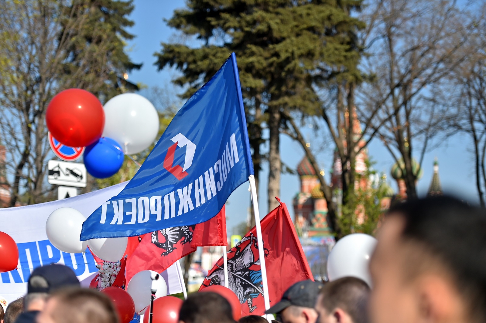 Первомайское шествие возглавили мэр Москвы Сергей Собянин, глава Федерации независимых профсоюзов России Михаил Шмаков, председатель Московской федерации профсоюзов Михаил Антонцев.