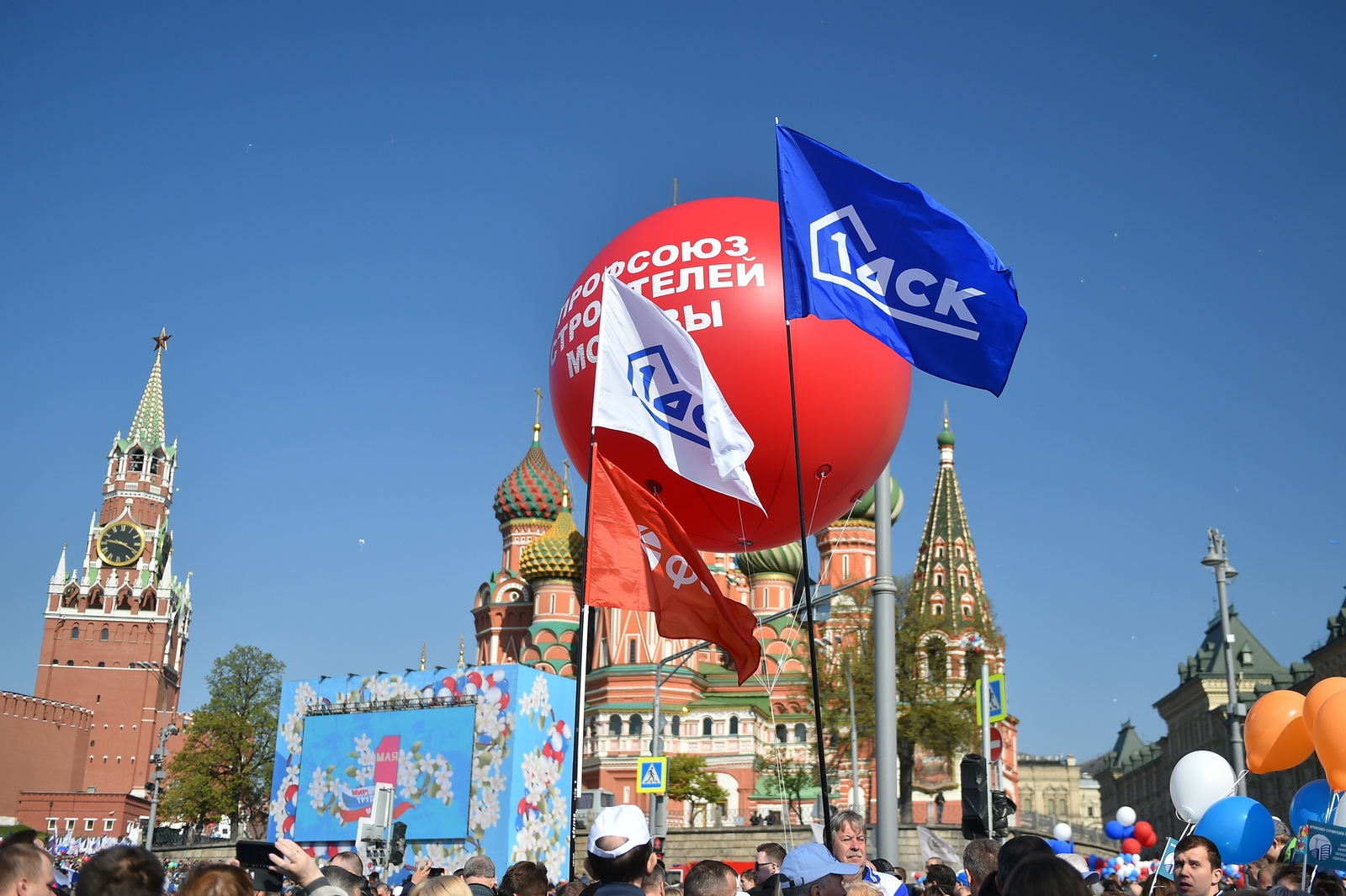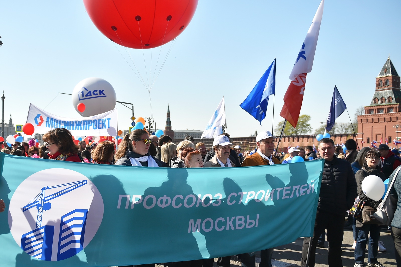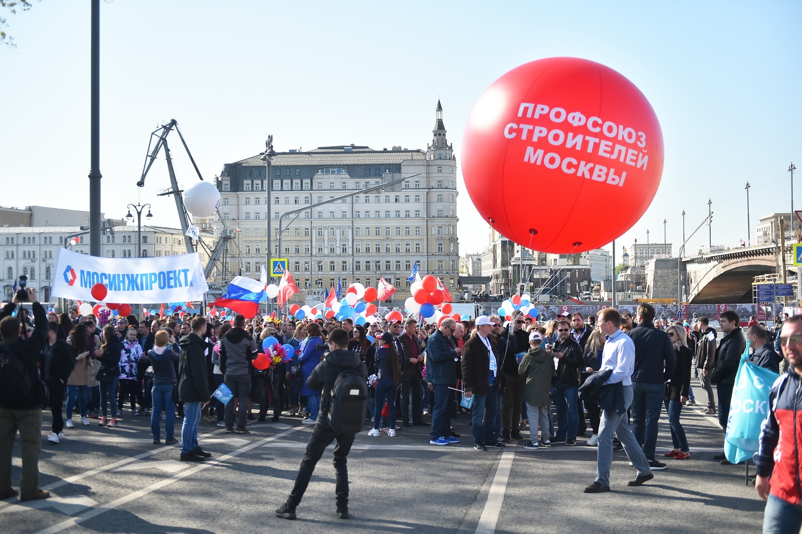 13-тысячная колонна работников московских строительных компаний, сотрудников отраслевых департаментов и комитетов, проектных институтов и организаций традиционно вышла на праздничное Первомайское шествие.