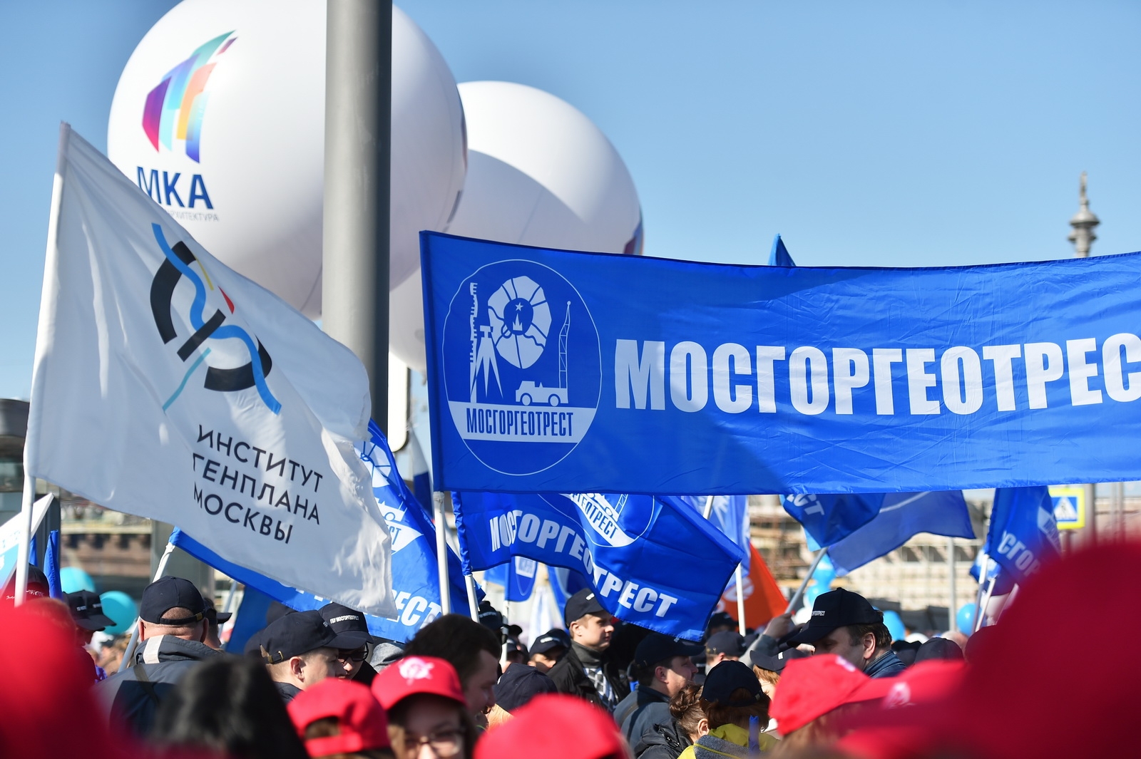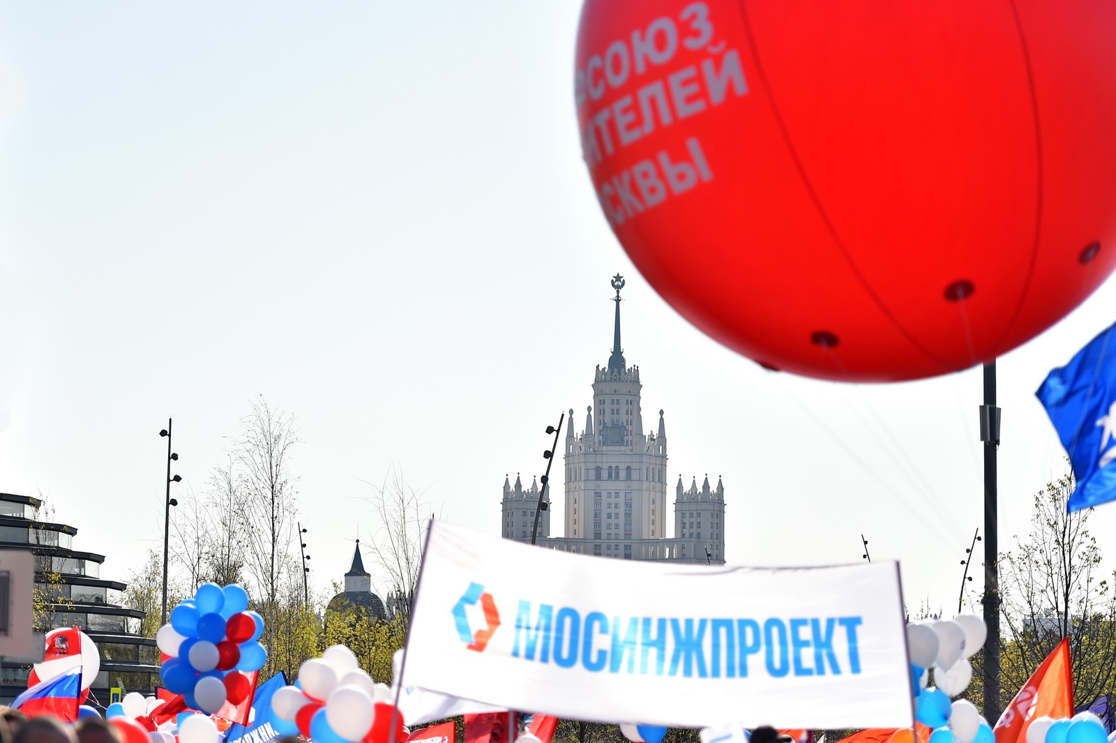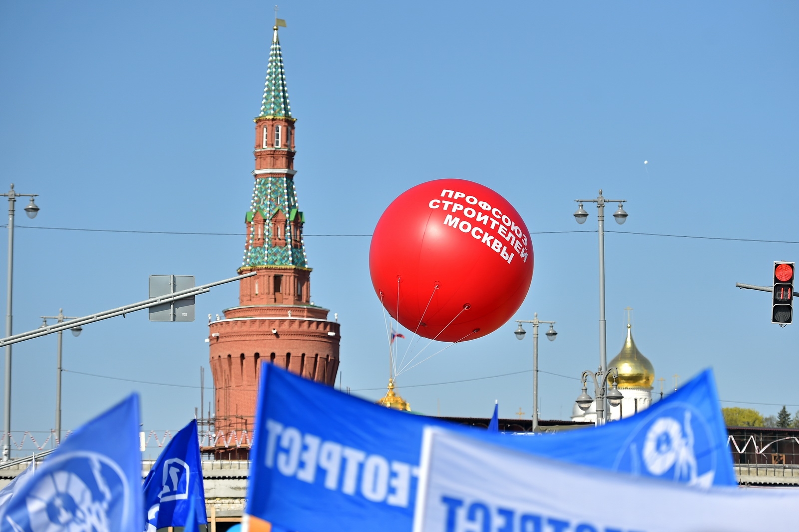13-тысячная колонна работников московских строительных компаний, сотрудников отраслевых департаментов и комитетов, проектных институтов и организаций традиционно вышла на праздничное Первомайское шествие.