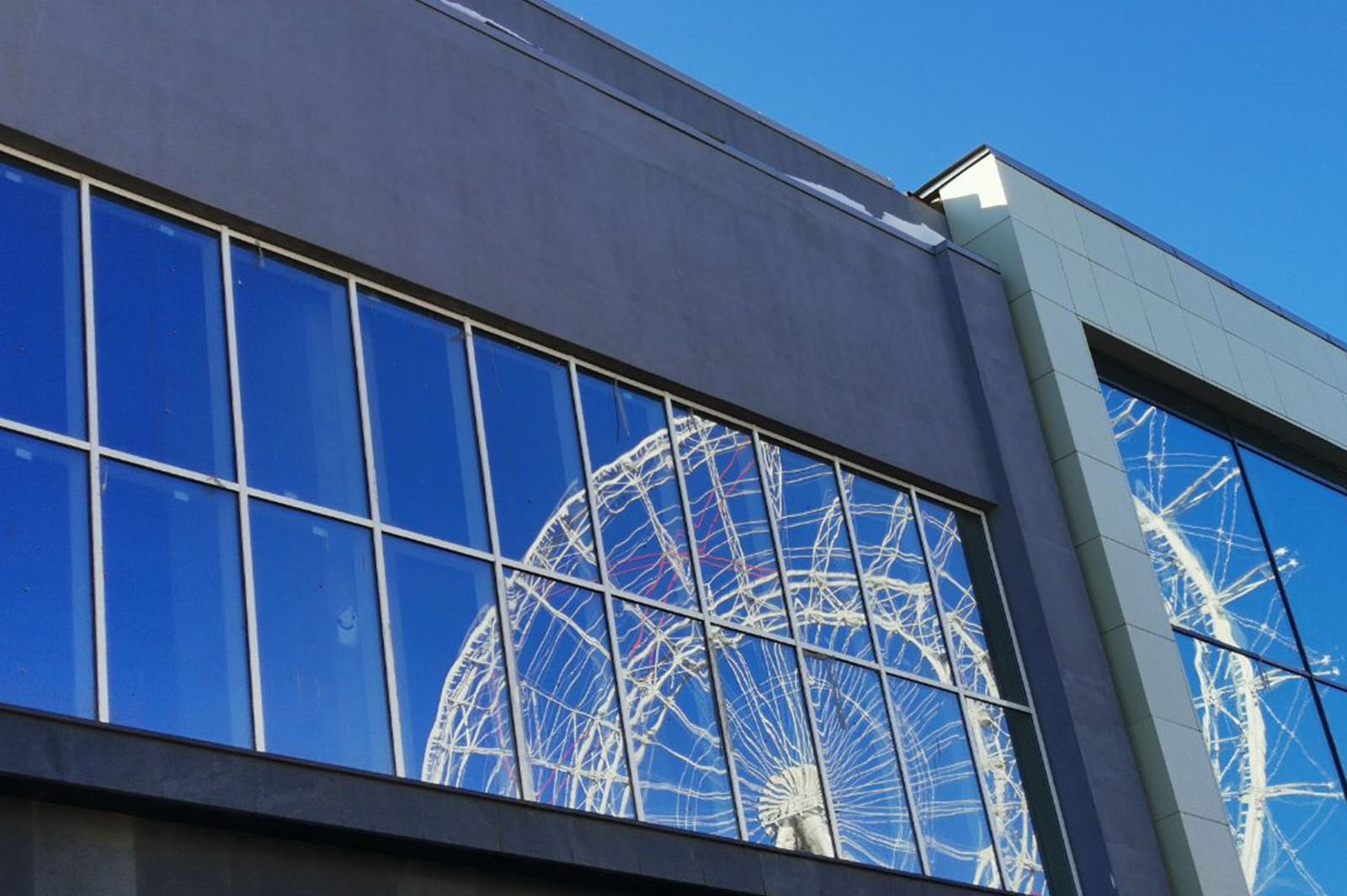 Рядом с колесом обозрения расположится одноименный многофункциональный комплекс (МФК). Он включает открытый городской променад с мобильными павильонами, а также два этажа закрытых пространств, где на 26 тыс. кв. метров разместятся рестораны, кафе, кинотеатр, магазины.