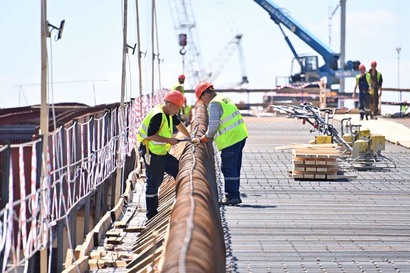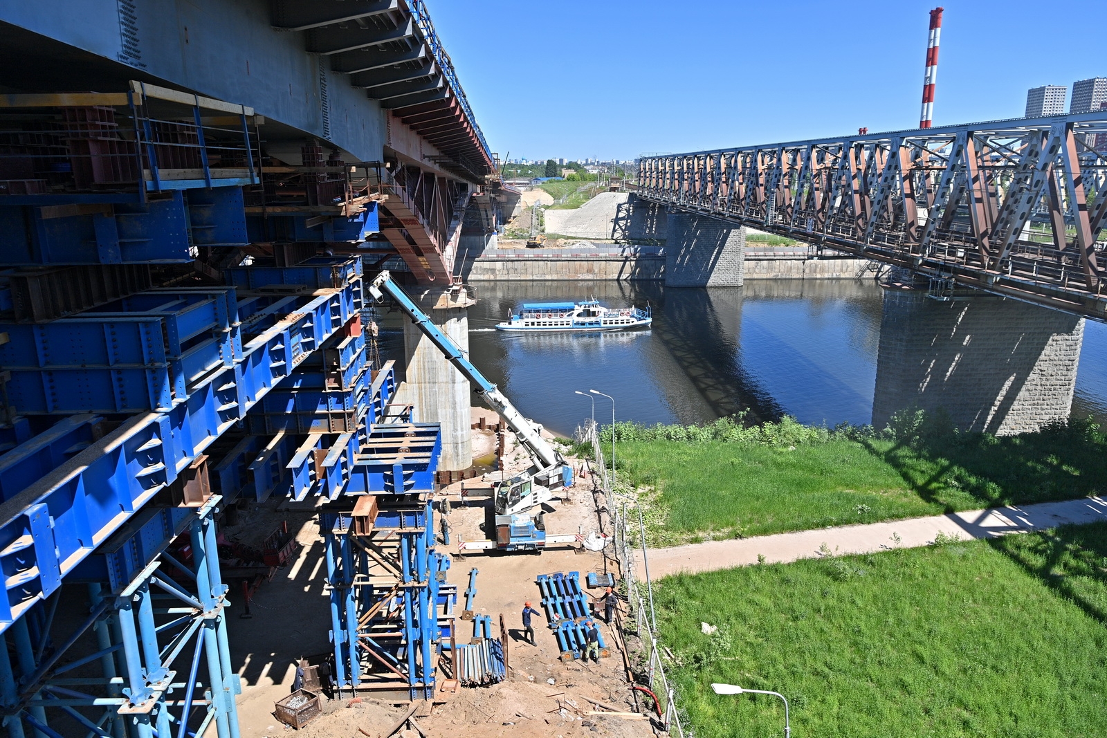 По словам главы Стройкомплекса, сейчас ведется подготовка к опусканию на опорные части металлоконструкций пролетных строений моста, устройство подпорных стен, опор правобережной эстакады, продолжается укрупнительная сборка и монтаж металлоконструкций.