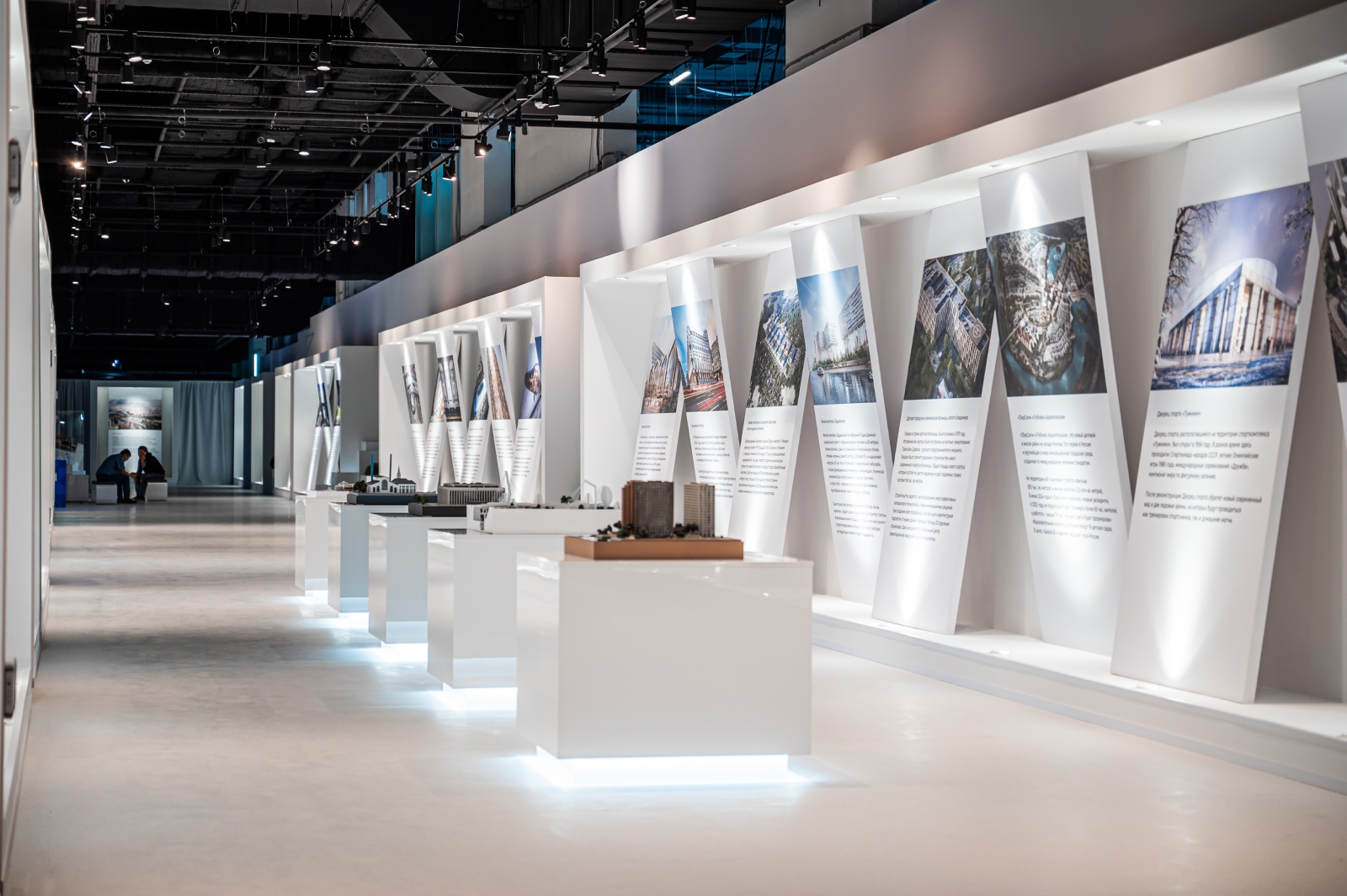 Другую часть пространства занимают проекты, показывающие архитектуру будущего. С их помощью можно ознакомиться с планами по преображению неэффективно используемых территорий и бывших промзон.