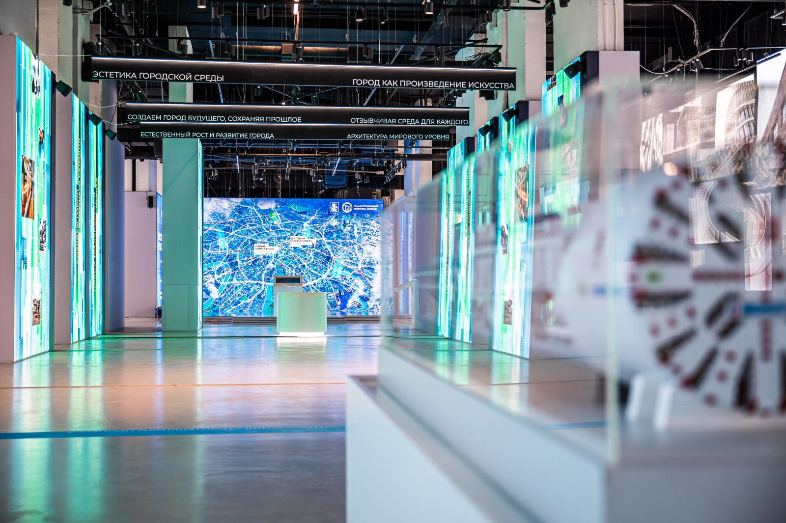 Например, в части экспозиции, посвященной философии и принципам градостроения в Москве, представлен проект редевелопмента части бывшей промзоны «Кунцево» в виде макета. На нем воспроизведен исходный вид территории и образ будущего: с жилыми домами, общественной застройкой, социально значимыми объектами и всей инфраструктурой. На контрасте посетители могут оценить принципы сбалансированного подхода к развитию микрорайона в ближайшие несколько лет.