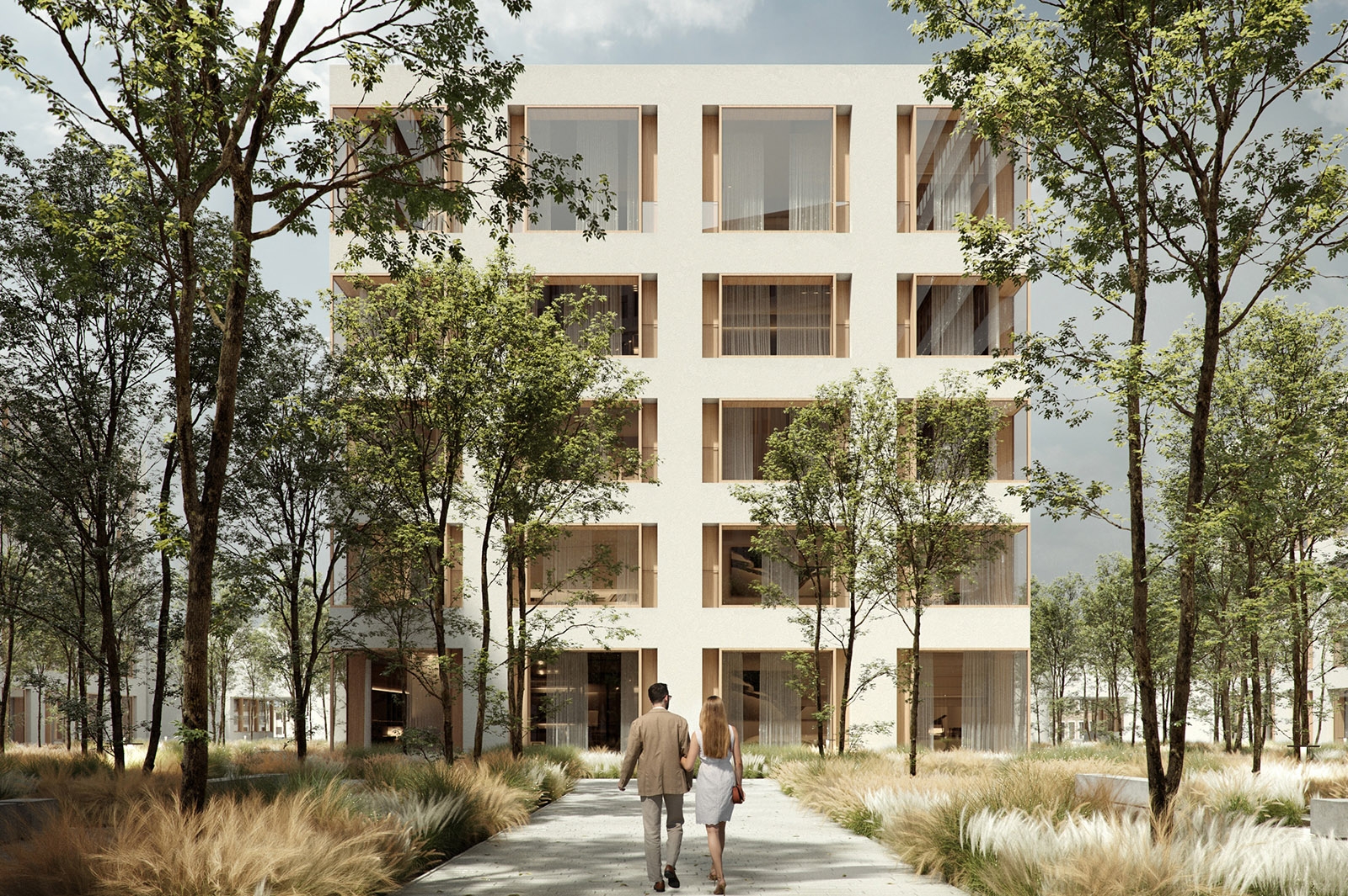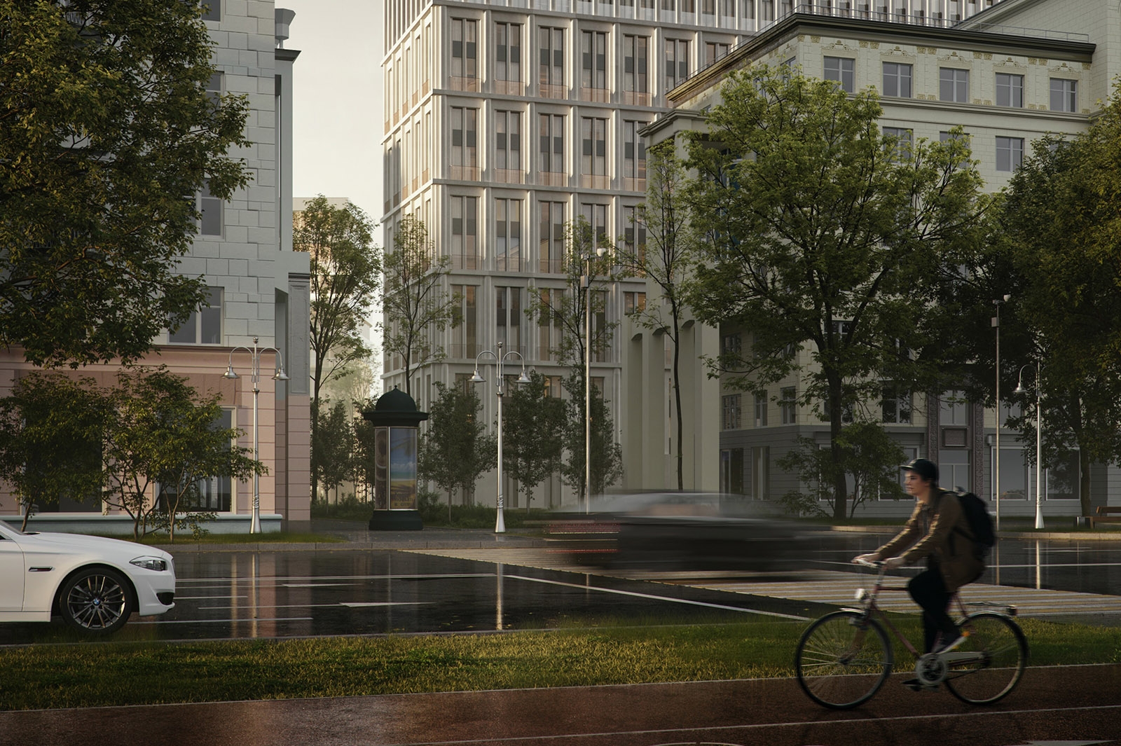 «Ведется плотная работа с Департаментом культурного наследия Москвы, поскольку здесь есть охранные зоны и действуют соответствующие регламенты. Павильон в форме самолета не входит в наш проект, у него другой собственник, однако мы ориентировались на него. Пятиэтажные корпуса выполнены в конструктивистском строгом характере», – пояснил Ляшенко.