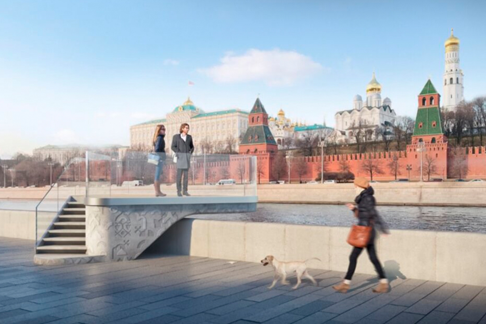 Создание трех смотровых площадок над Москвой-рекой на набережных острова Балчуг планируется завершить в начале сентября. Две из них расположатся на Раушской набережной, еще одна – на Софийской.