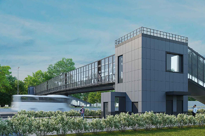 Длина сооружения составит 64 метра, ширина – три метра. Подняться на переход можно будет как по лестнице, так и на лифте. Для безопасности пешеходов вдоль прохода сделают перила.