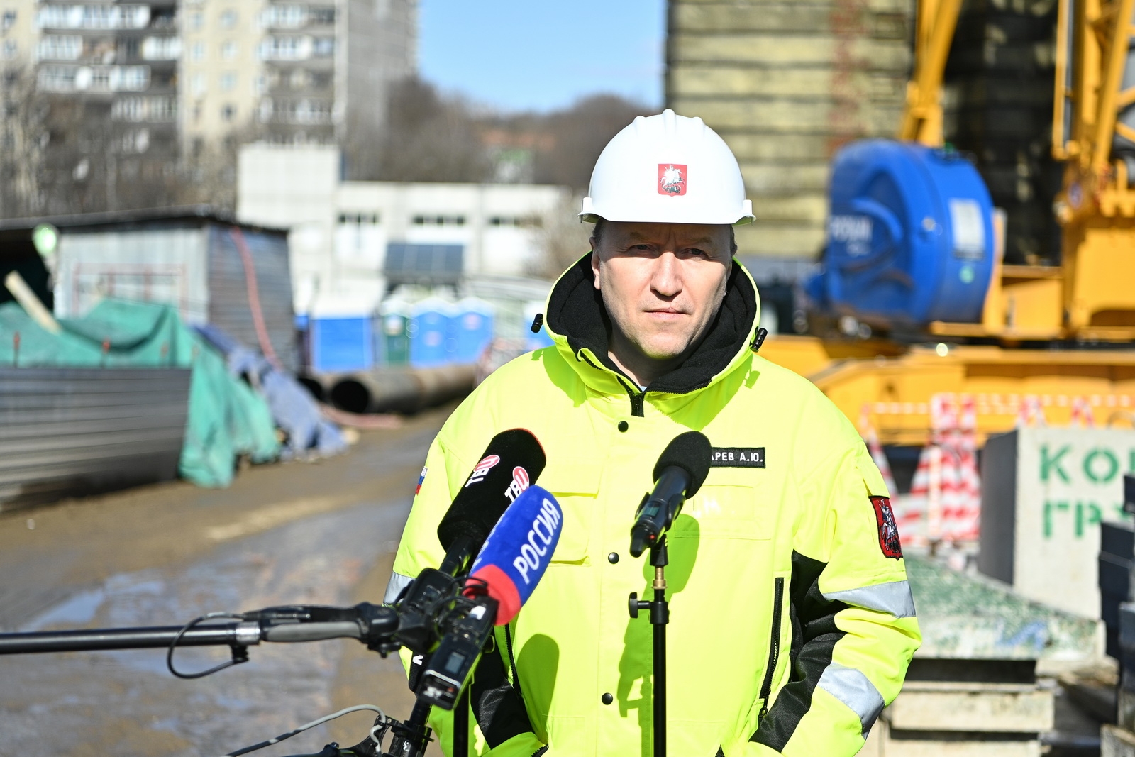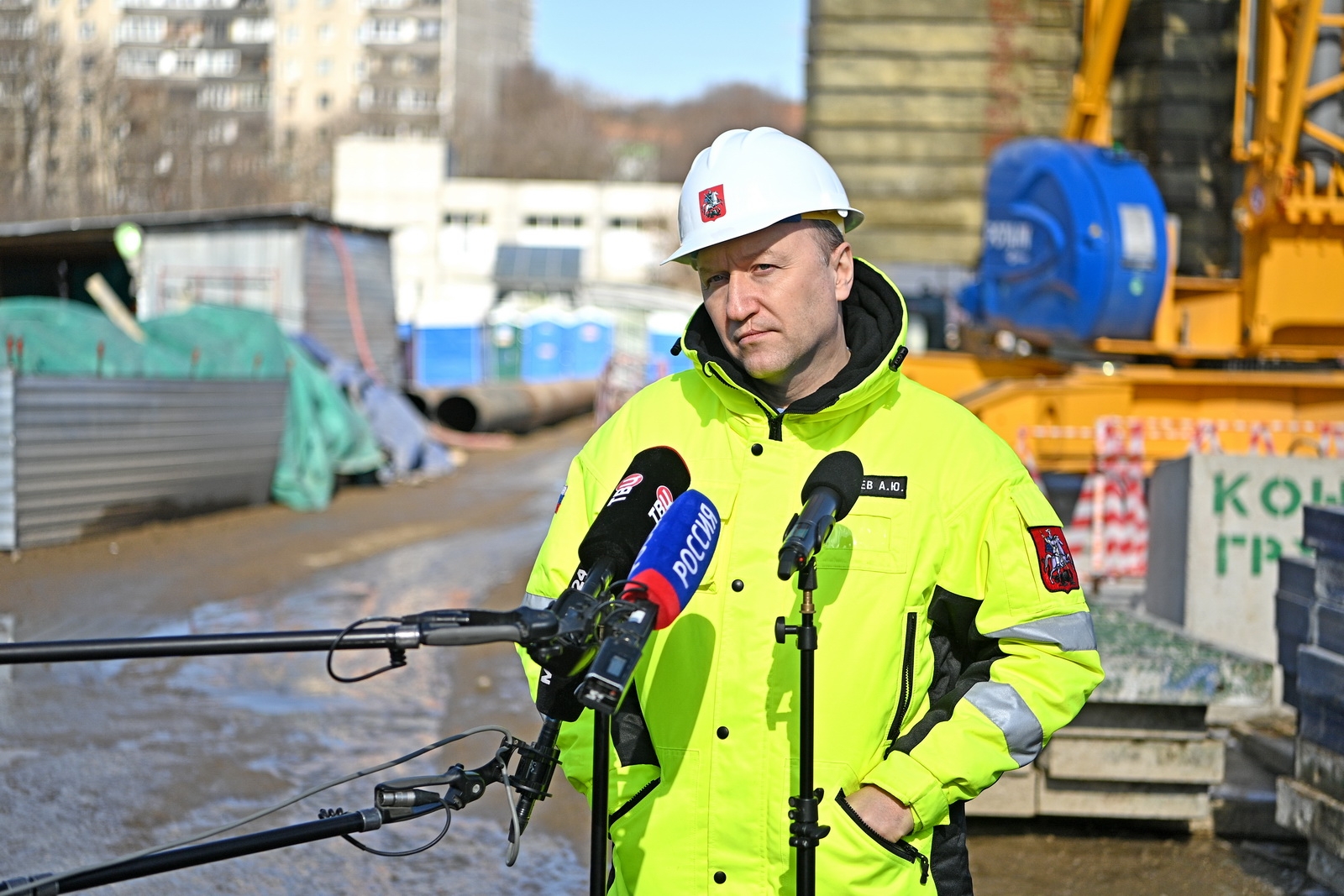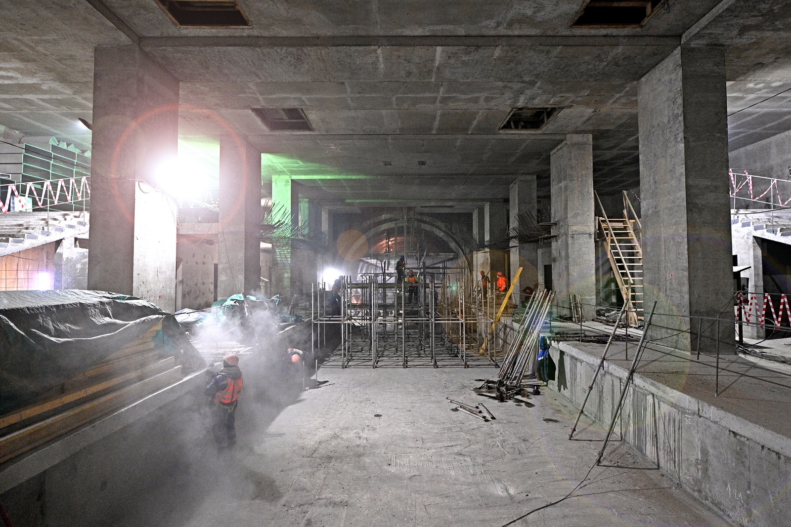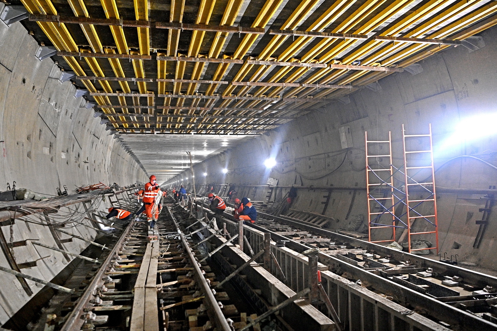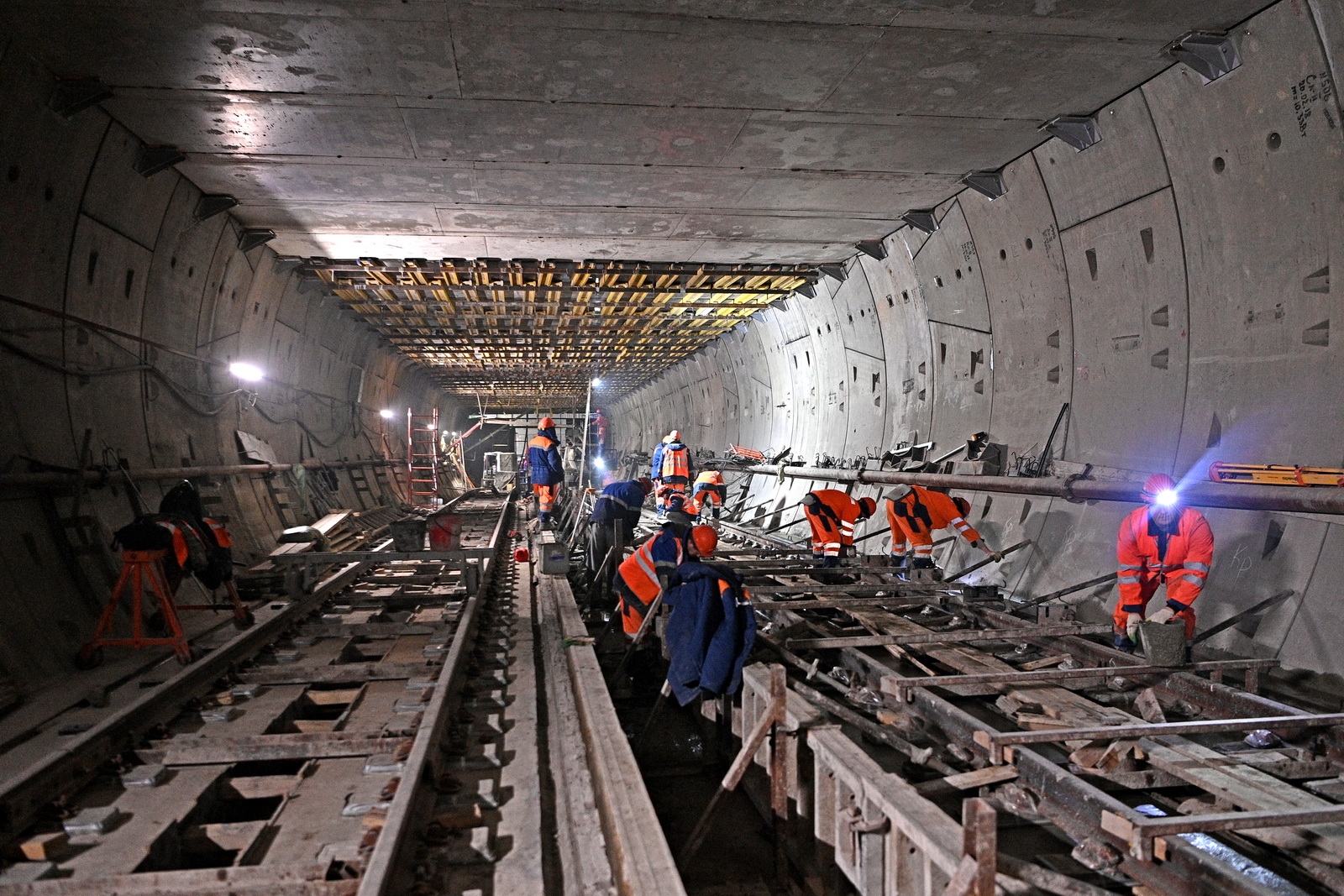 Заммэра отметил, что работы по устройству жесткого основания и вентиляционного перекрытия двухпутного перегонного тоннеля между строящимися станциями «Терехово» и «Кунцевская» завершены.