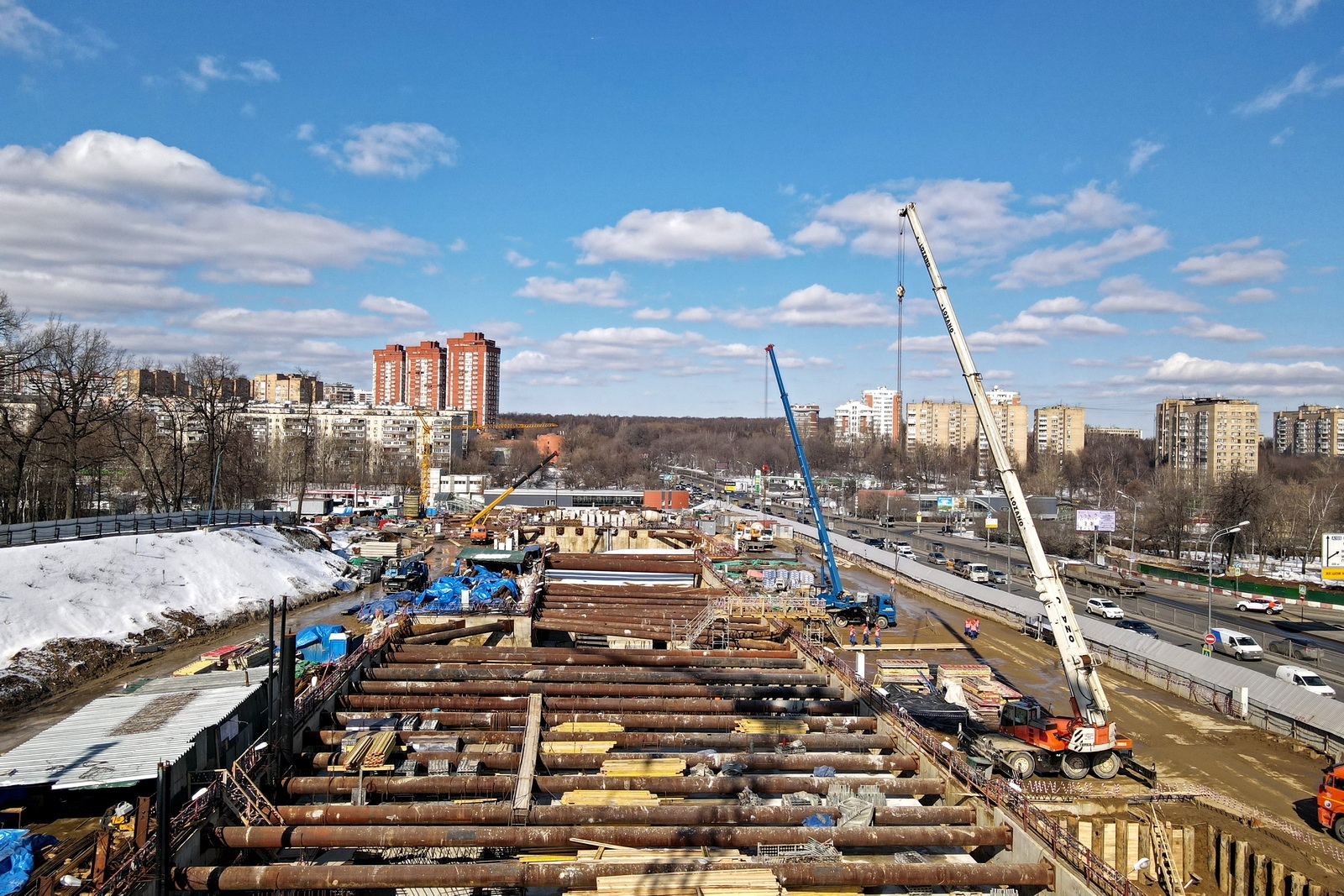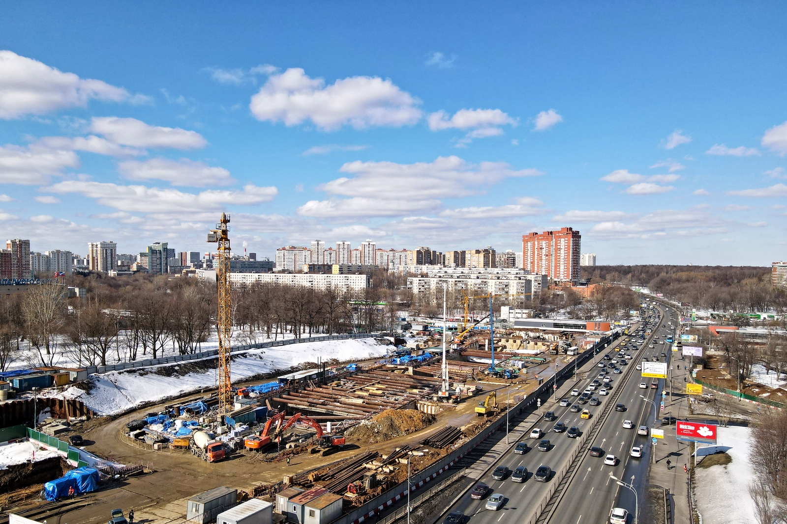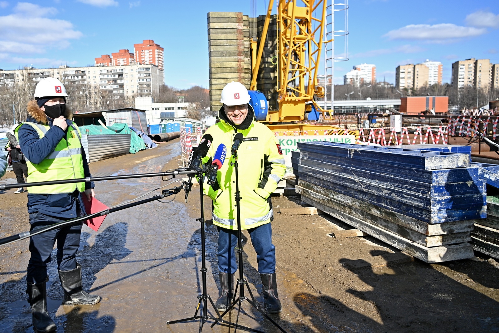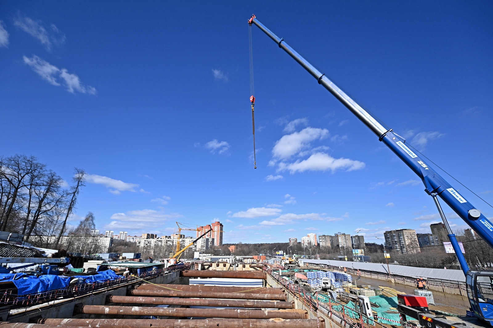 Заммэра отметил, что работы по устройству жесткого основания и вентиляционного перекрытия двухпутного перегонного тоннеля между строящимися станциями «Терехово» и «Кунцевская» завершены.