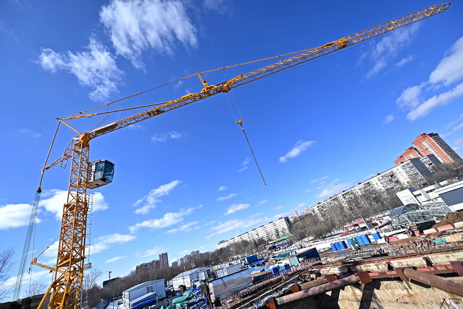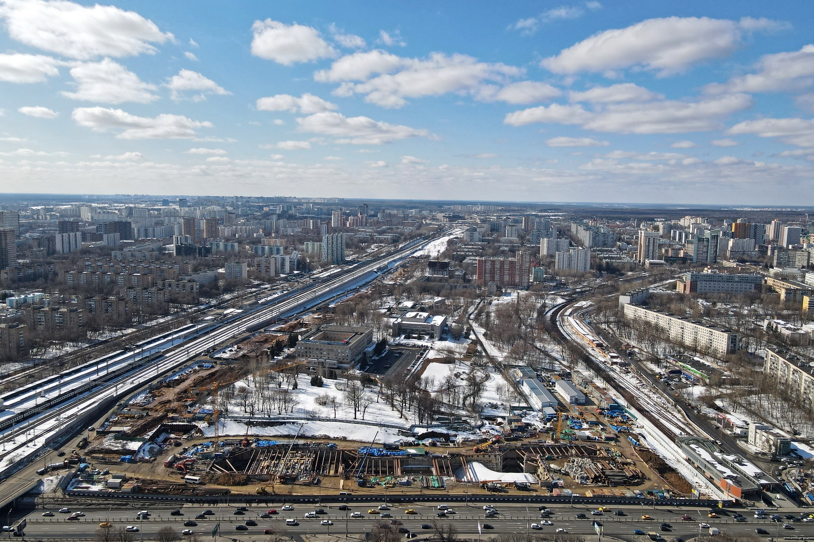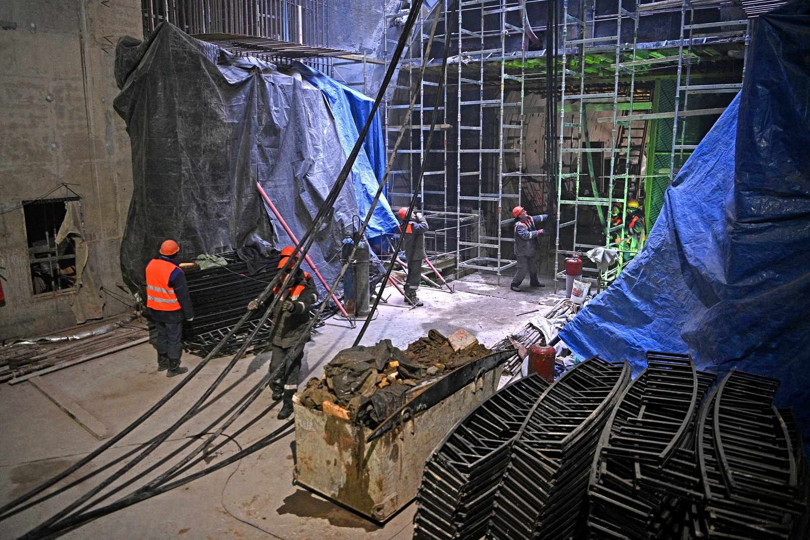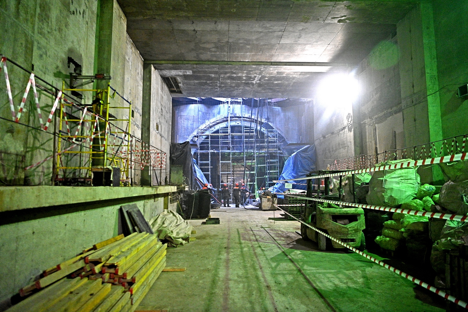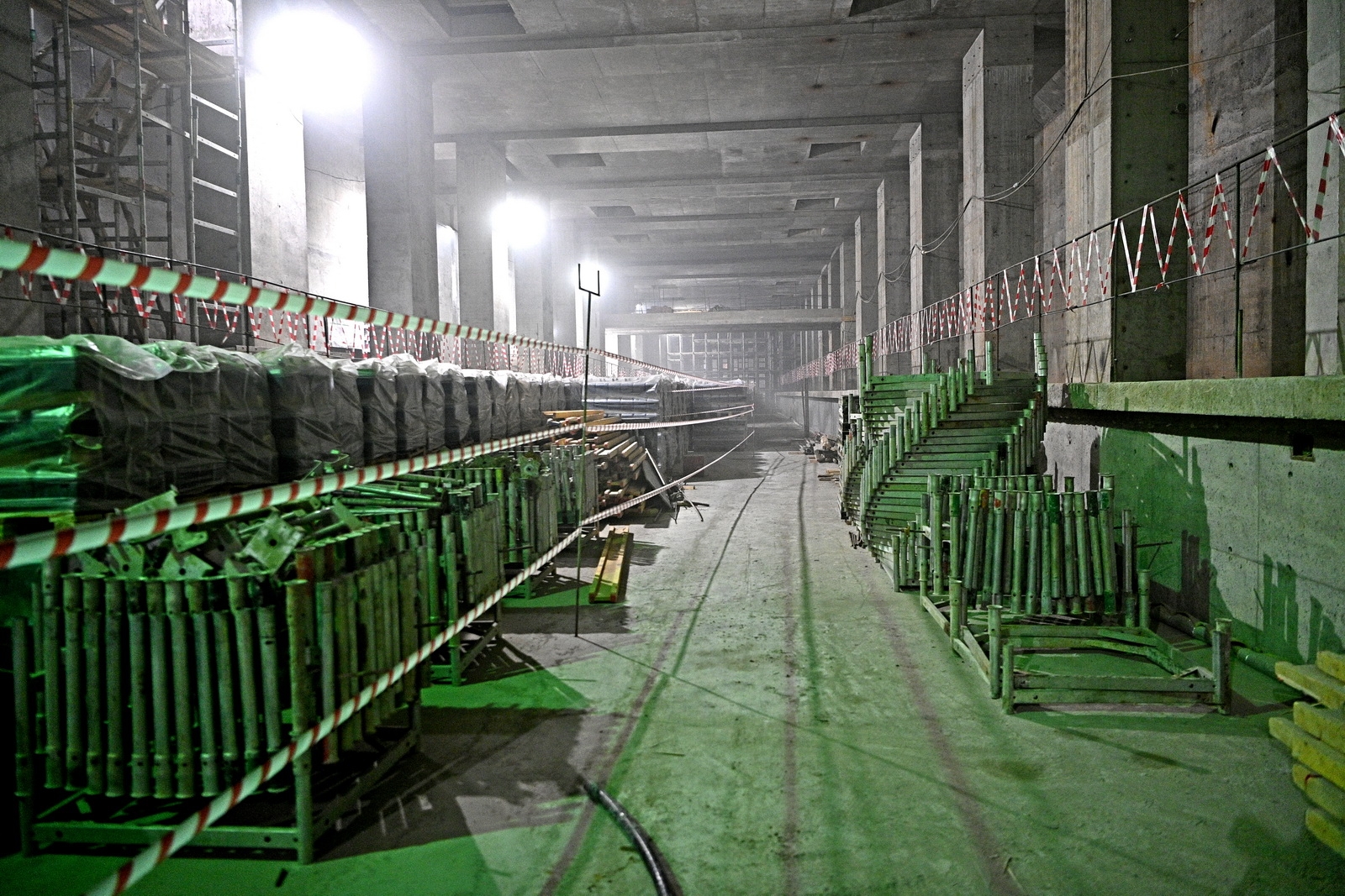 Заммэра отметил, что работы по устройству жесткого основания и вентиляционного перекрытия двухпутного перегонного тоннеля между строящимися станциями «Терехово» и «Кунцевская» завершены.