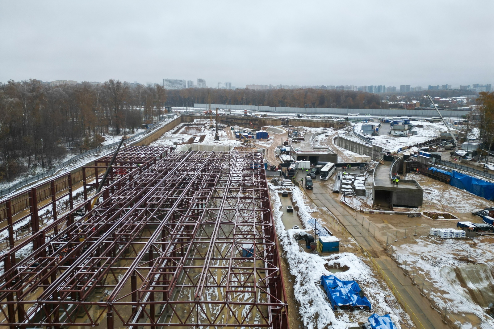 «Сейчас ведется устройство глубинного дренажа по вееру путей и идут монолитные работы по коммуникационному коллектору для внутренних сетей теплоснабжения и водоснабжения. Кроме того, начались земляные работы по устройству котлована инженерного корпуса, а готовность монтажа металлоконструкций здания мотодепо оценивается на 65%», – отметил генеральный директор АО «Мосинжпроект» (генеральный проектировщик и генеральный подрядчик строительства новых линий и станций московского метро) Юрий Кравцов.