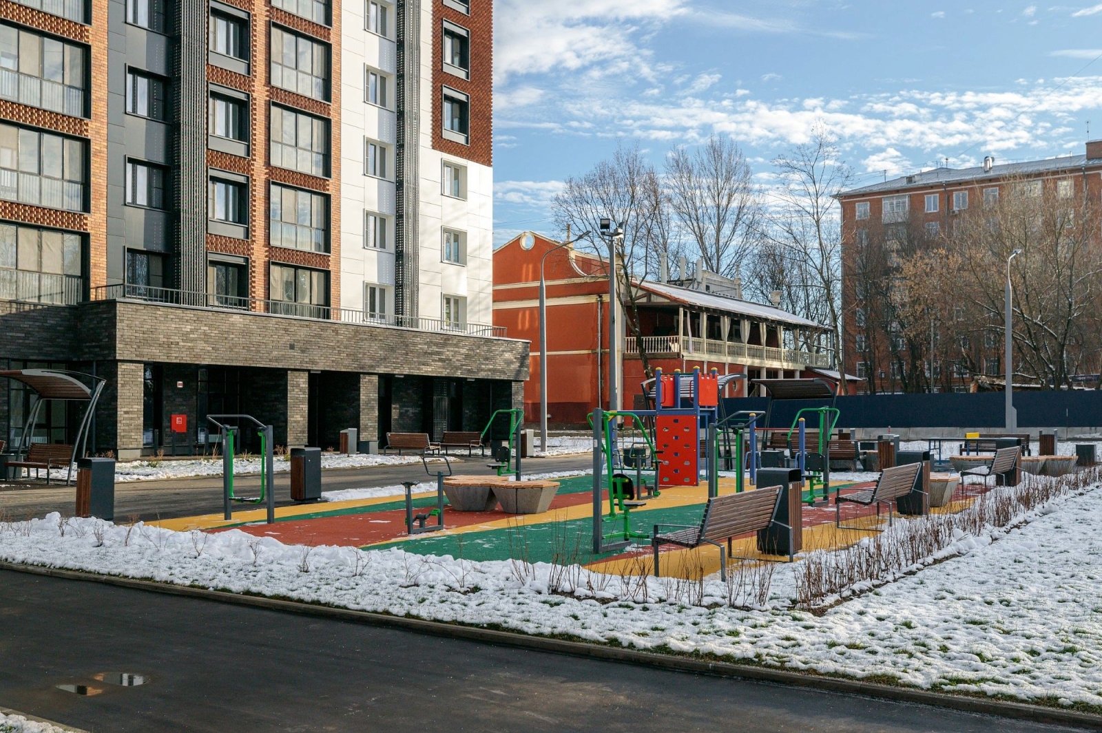 Возле новостройки обустроены две спортивные и детская площадки, а также зона отдыха для горожан. На придомовой территории выполнено комплексное озеленение: там высадили более 650 деревьев и кустарников.