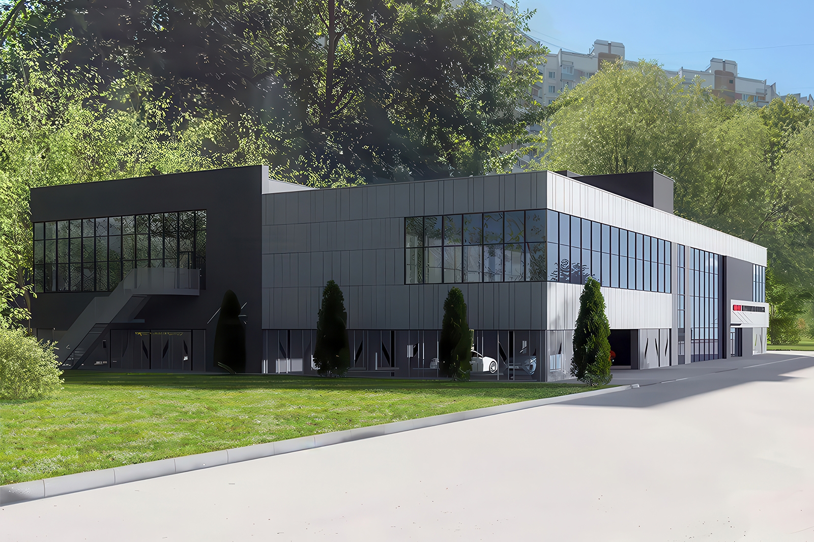 При проведении внешних и внутренних работ инвестор использует современные высококачественные материалы. Так, здание облицуют вентилируемой системой из фиброцементных фасадных панелей в серых тонах.