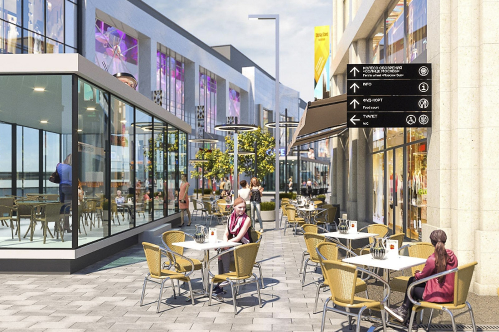 Рядом с колесом обозрения расположится одноименный многофункциональный комплекс (МФК). Он будет включать открытый городской променад с мобильными павильонами, а также два этажа закрытых пространств, где на 26 тыс. кв. метров разместятся рестораны, кафе, кинотеатр, магазины.
