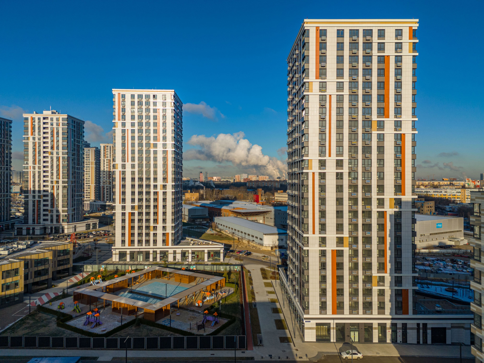 Две 23-этажные башни площадью более 33,6 тыс. кв. м возвели по адресу: 1-й Котляковский пер., д. 4, корп. 1 и 2.