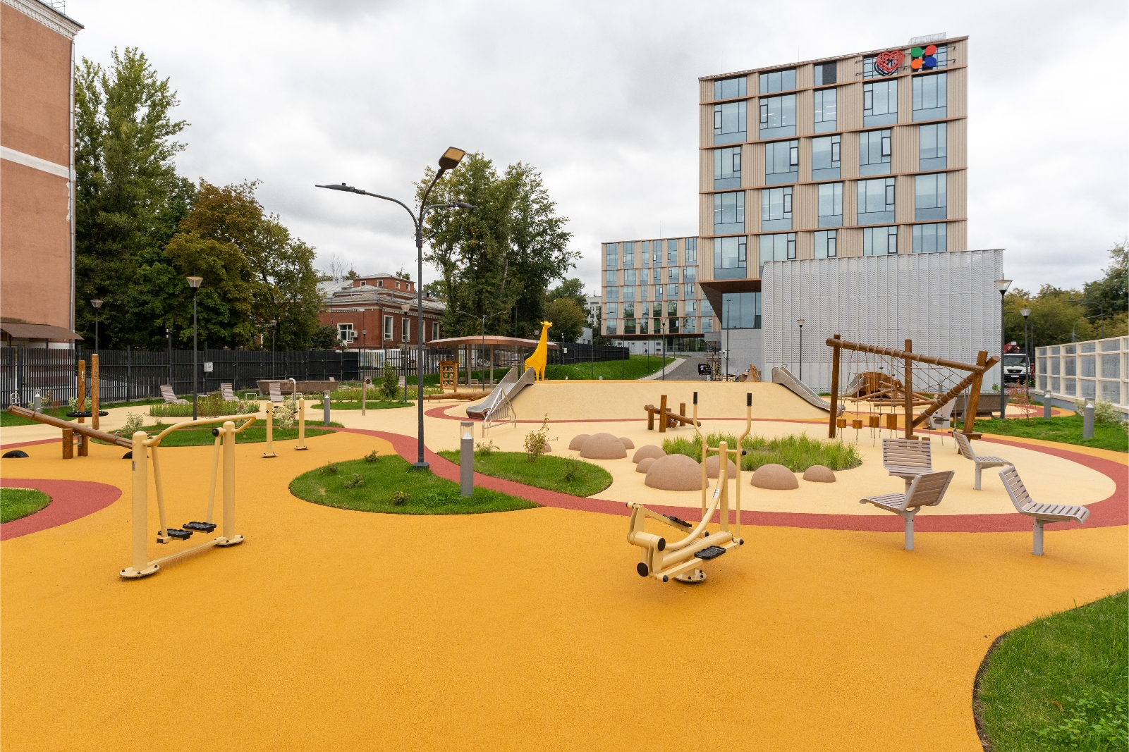Комплекс площадью около 58 тыс. кв. м построен с использованием энергоэффективных материалов и технологий. Также были применены современные решения по устройству светопрозрачных конструкций и архитектурной подсветки.