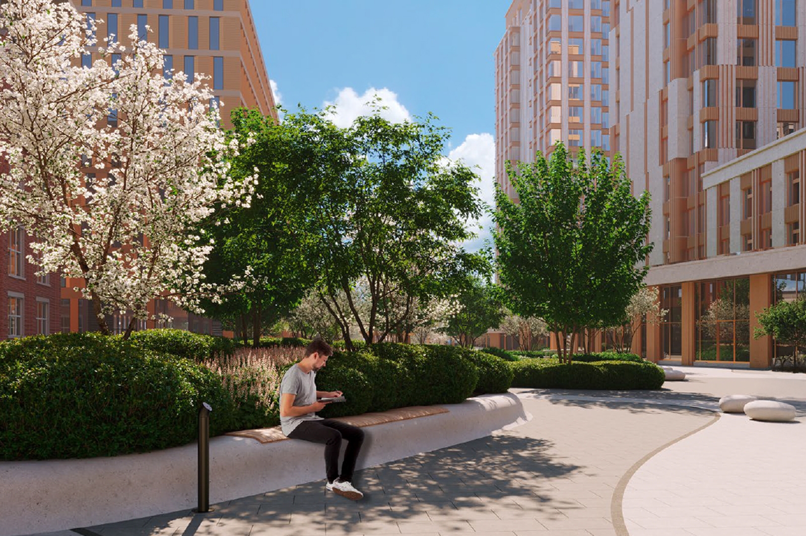Он отметил, что на площади предусмотрены места для работы на открытом воздухе, а также ресторанные дворики для деловых переговоров и встреч с друзьями.