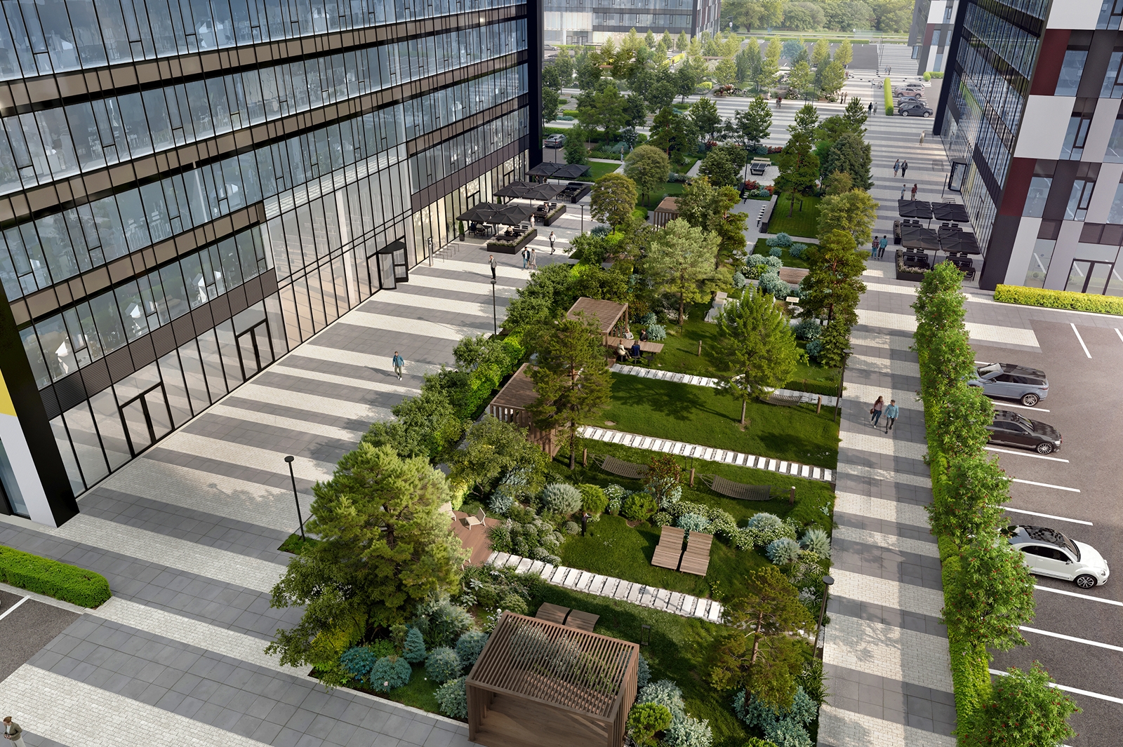 По его словам, благоустройство новой общественной зоны планируется завершить в 2025 году вместе с окончанием строительства последнего корпуса бизнес-парка.