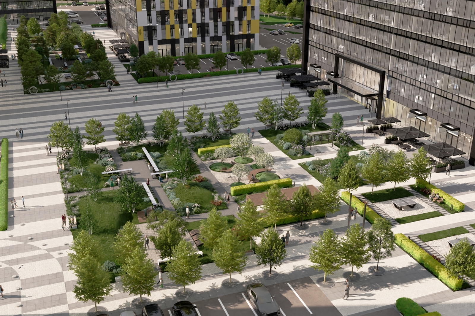 Большое значение при благоустройстве общественного пространства отведено озеленению: там высадят деревья лиственных и хвойных пород, более 10 видов кустарников, сформируют «острова» из многолетников и злаков.