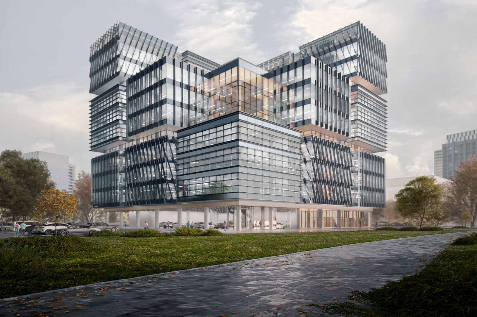 «Визуальный облик и объемно-пространственные решения комплекса являются архитектурной интерпретацией процесса накопления информации и блоков данных. Физически эти процессы выражены выступающими объемами кубической формы, которые и формируют основной объем здания», – сказал Сергей Кузнецов.