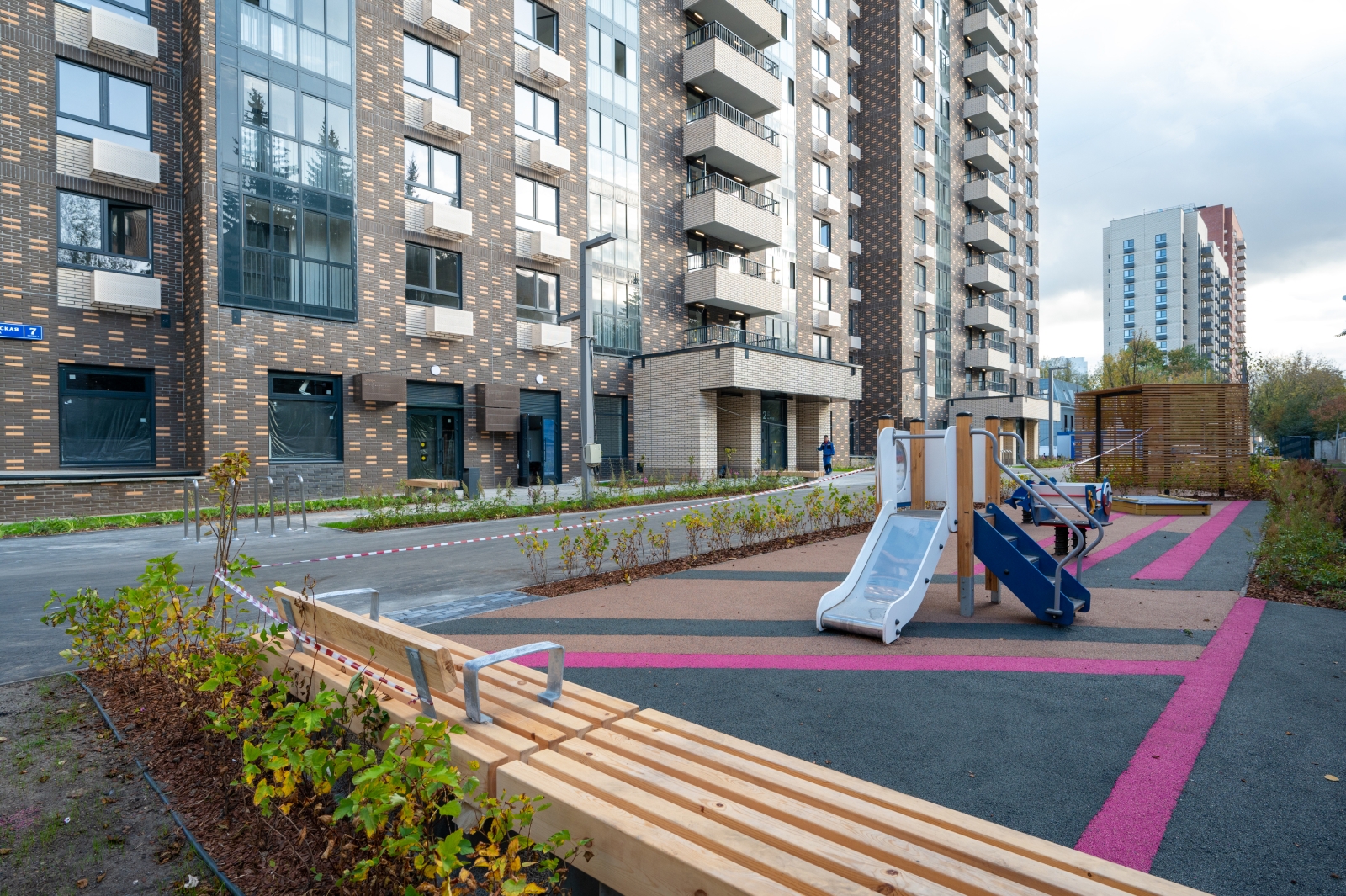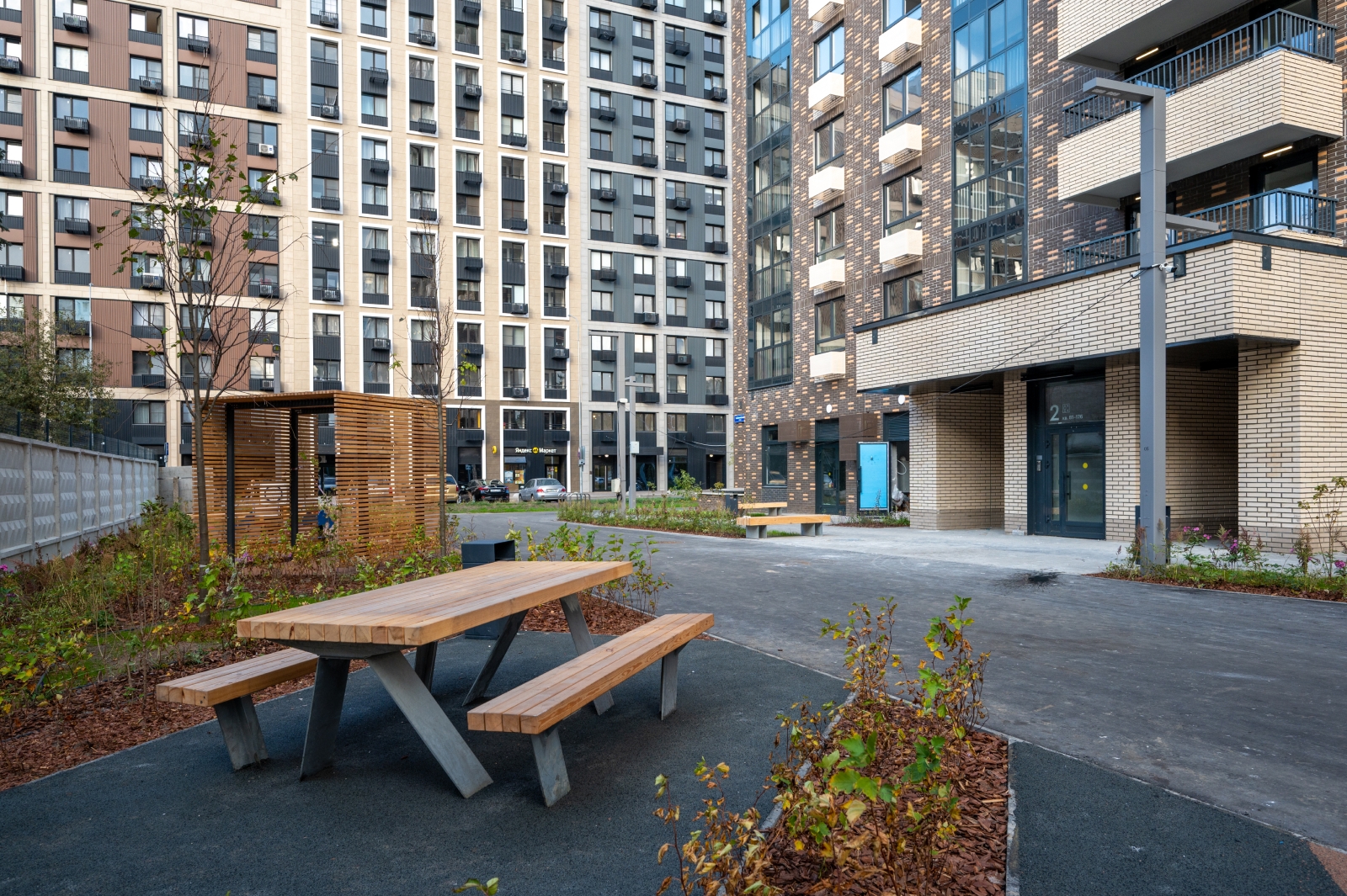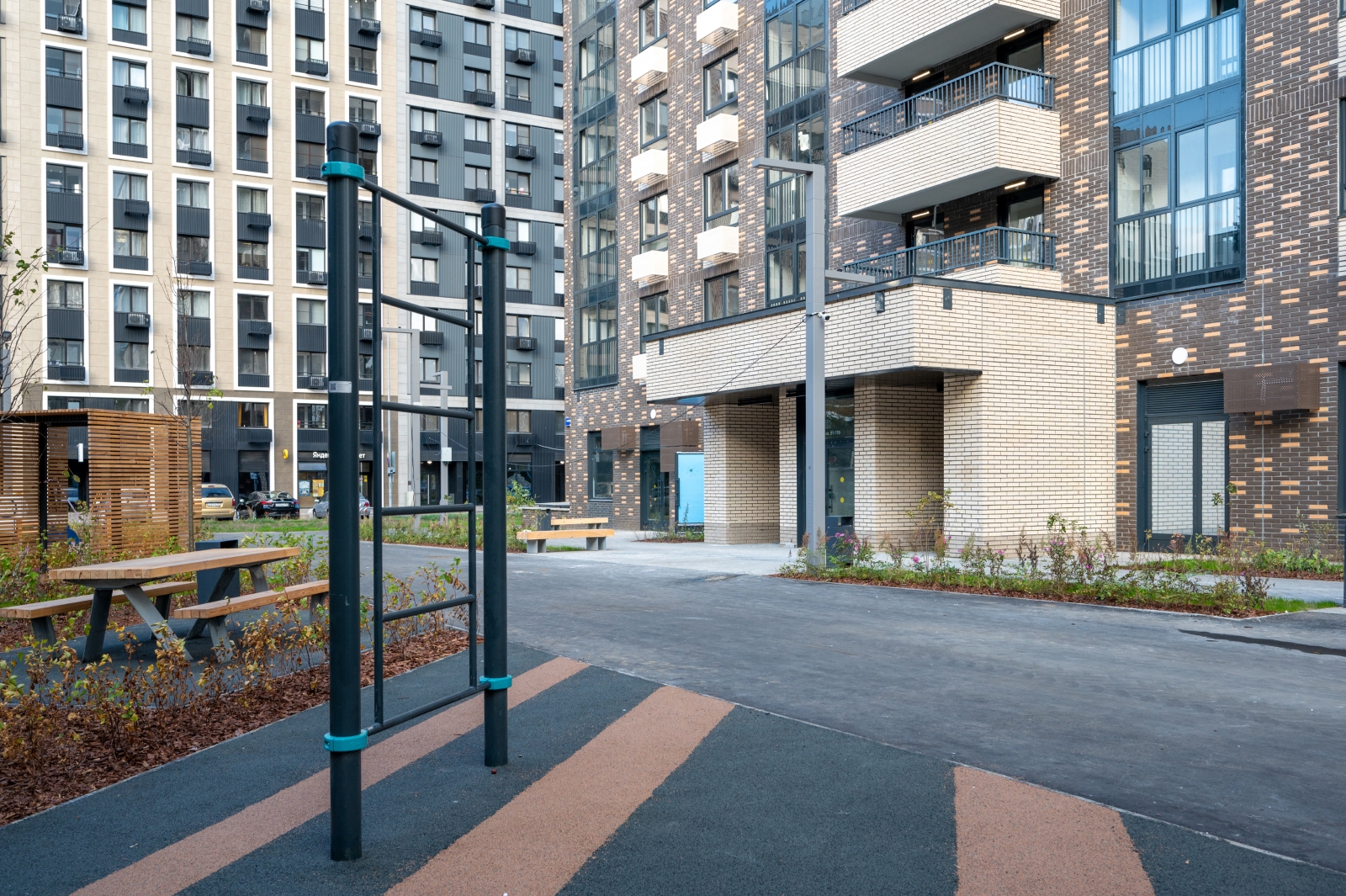 В прогулочных зонах устанавливают фонари, лавочки и урны, разбивают клумбы, высаживают деревья и кустарники. В новых кварталах найдется место и для тихого отдыха, и для активных занятий спортом.
