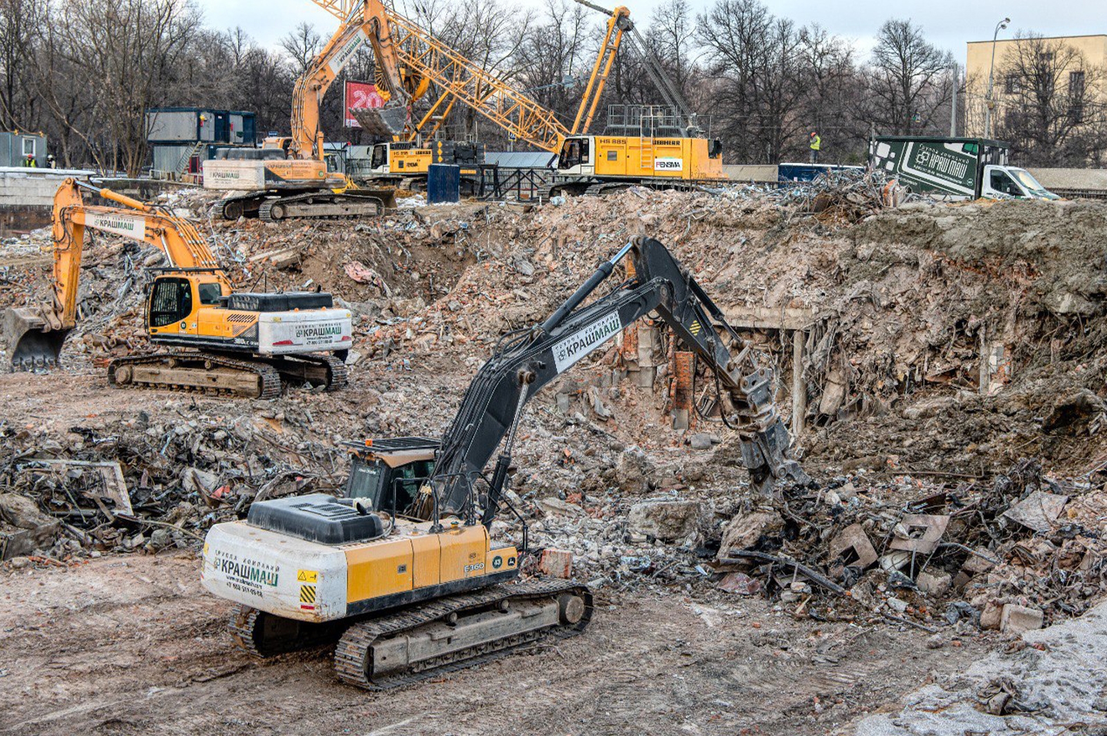 Он отметил, что на площадке задействованы пять гусеничных экскаваторов, а также самый большой в России экскаватор-разрушитель CAT-390 c вылетом стрелы до 60 метров.