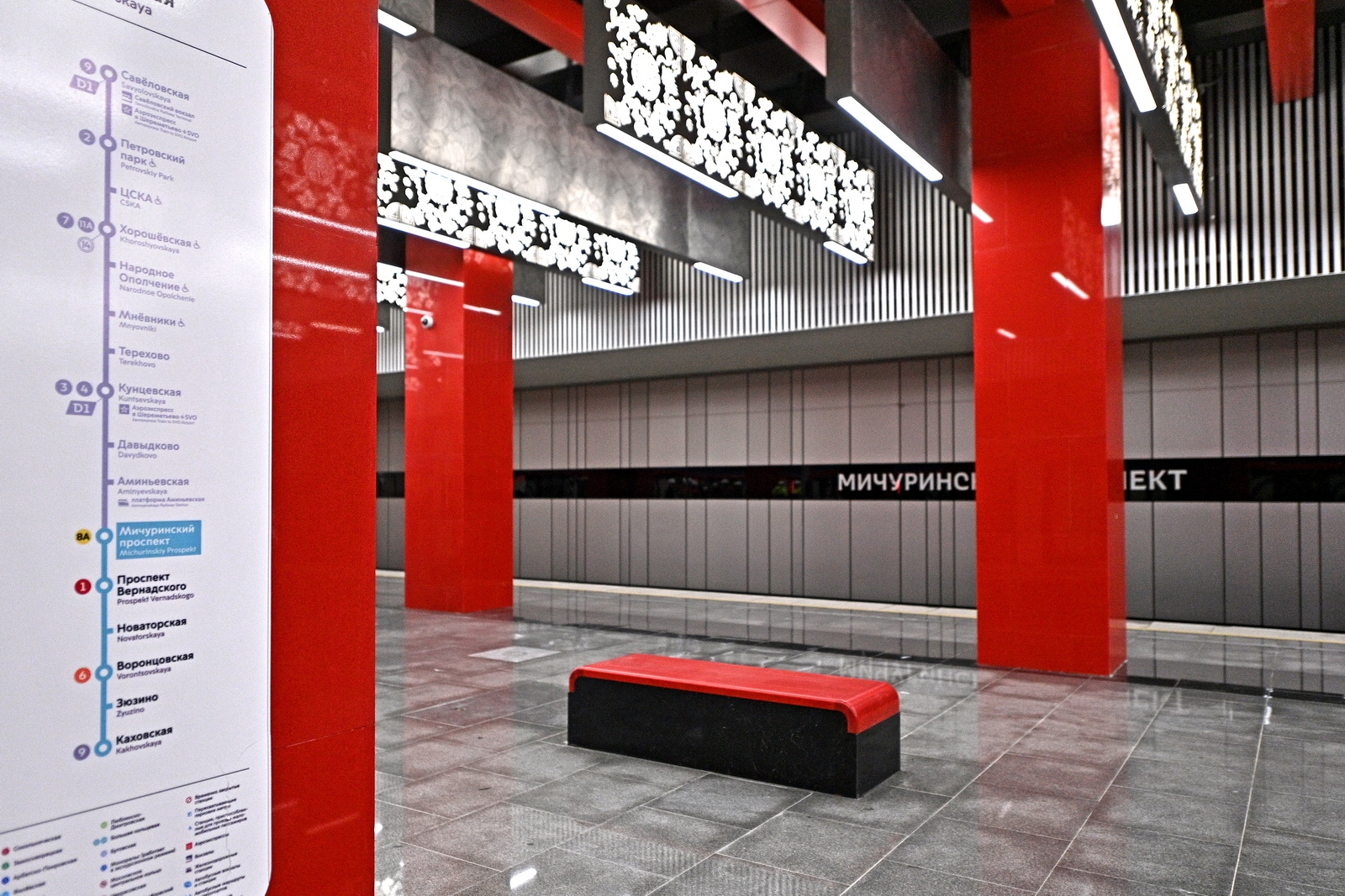 «Все три станции, как и большинство станций московского метро, имеют уникальный, индивидуальный дизайн. Основным художественным элементом станции «Аминьевская» является потолок в форме мягких «волн-барханов» с точечными светильниками, свет которых напоминает Млечный путь. В оформлении станции «Мичуринский проспект» в благодарность подрядчику из КНР, компании CRCC, использованы китайские мотивы: инсталляции на потолке украшают иероглифы. Станция «Проспект Вернадского» оформлена в стиле хай-тек с геометрическими формами отделки потолка, пола и колонн, а расположенные в шахматном порядке светильники на потолке создают оригинальный узор, отражаясь на мраморном полу», – добавил Бочкарёв.