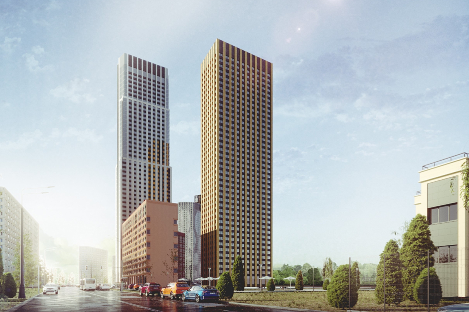 «Основная идея заключается в максимальном раскрытии дворовой части на природное окружение. Большой перепад высот на участке создаст многоуровневое пространство, плавно перетекающее в Очаковский парк, который станет логическим продолжением двора проекта, а жители получат комфортные маршруты для долгих прогулок», – пояснил Сергей Кузнецов.