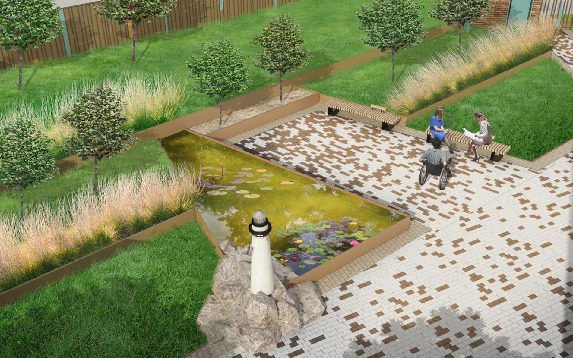 Также для пациентов построят бассейн на первом этаже, а на втором расположат зимний сад и специализированные игровые комнаты. По мнению архитекторов, это позволит детям получать благоприятные впечатления от контакта с природой не зависимо от времени года.