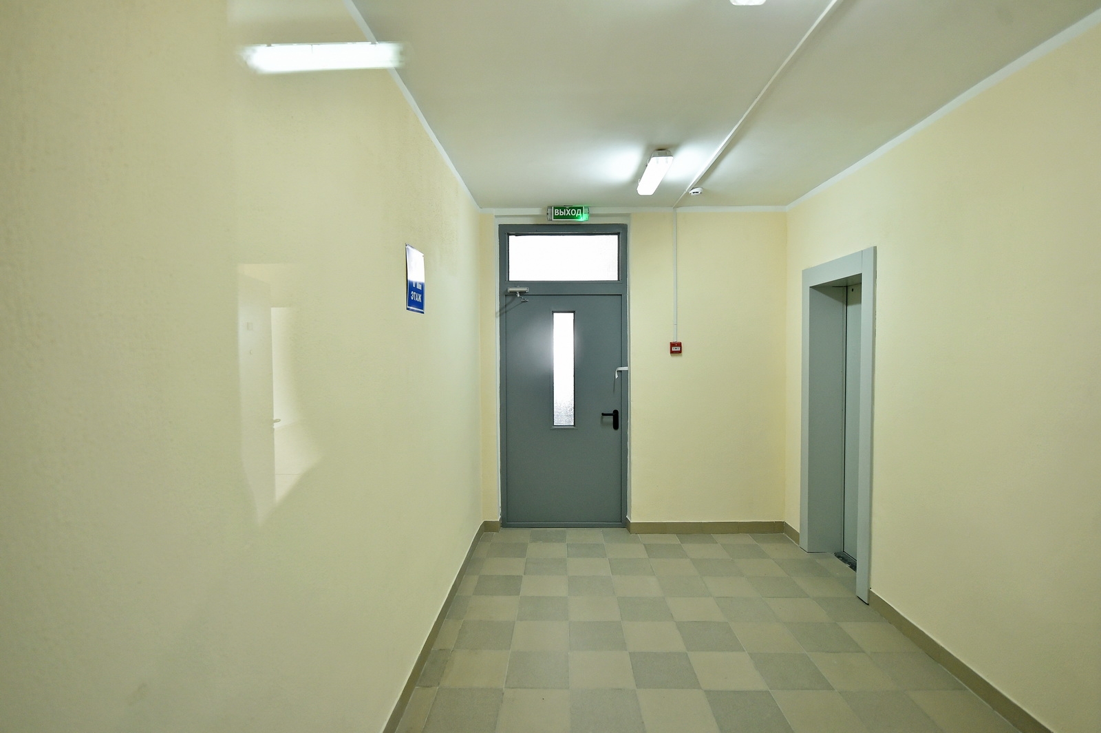 В отличие от пятиэтажек в новом доме есть грузовой и пассажирский лифты. Территория благоустроена. Возле дома оборудовали детскую и спортивную площадки, места для парковки автомобилей.