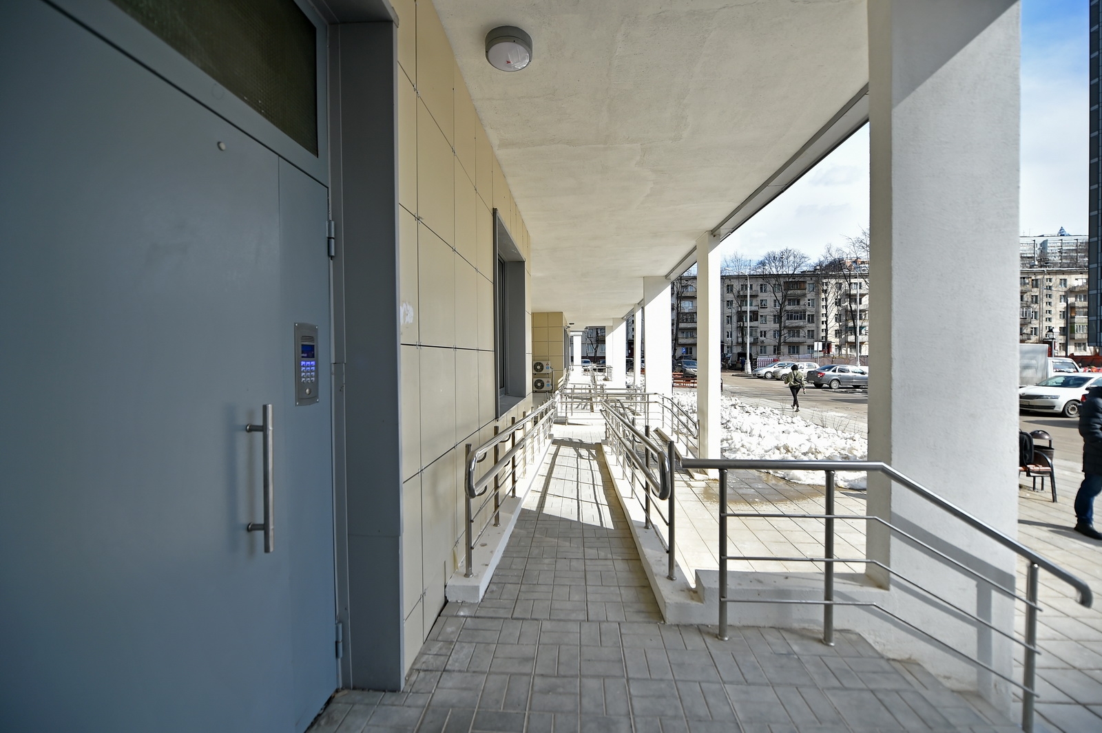 Первый этаж дома нежилой. Вход в подъезд расположен на уровне земли, есть пандус. Это сделано для удобства маломобильных и пожилых людей, а также мам с детскими колясками.