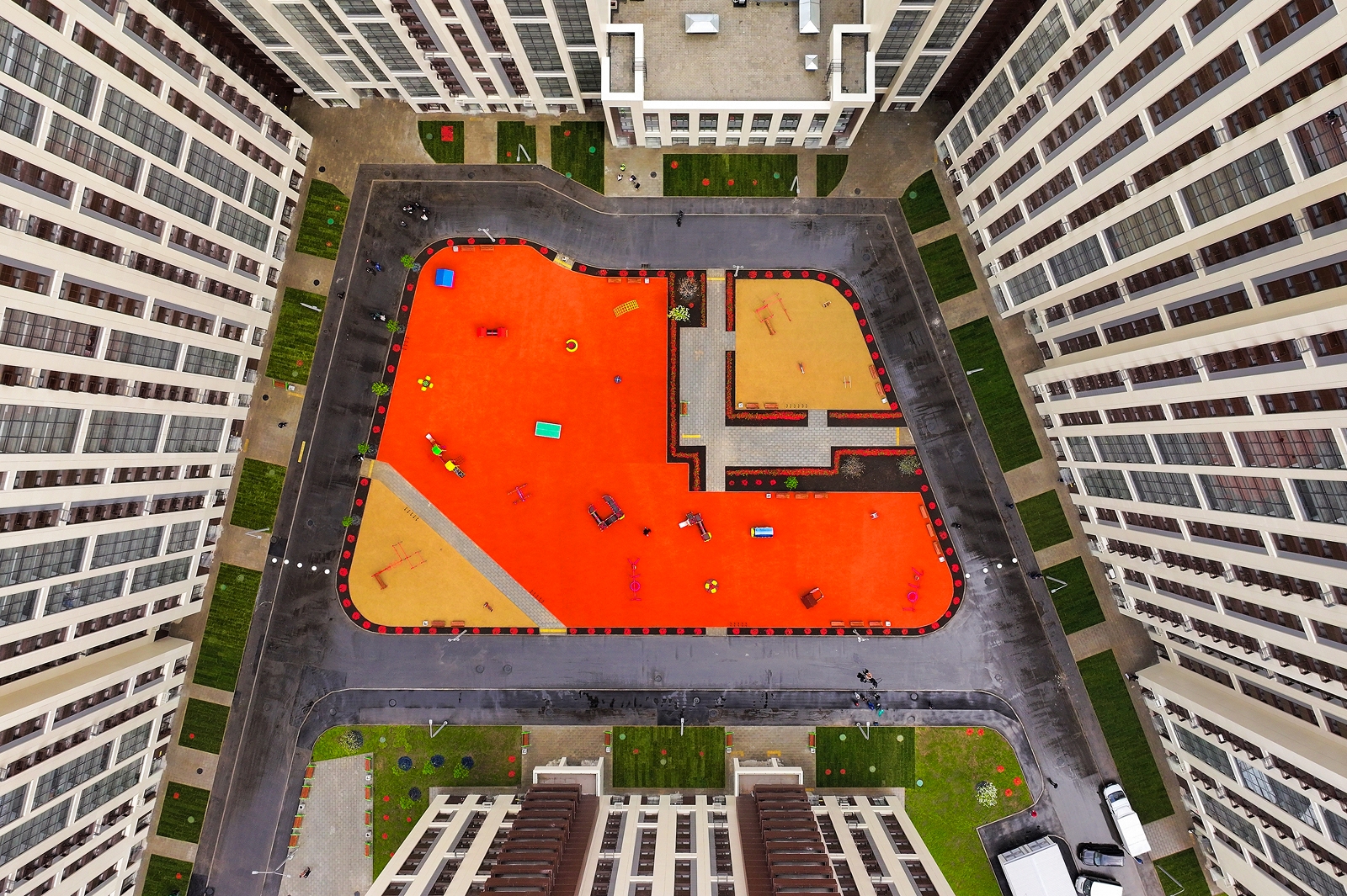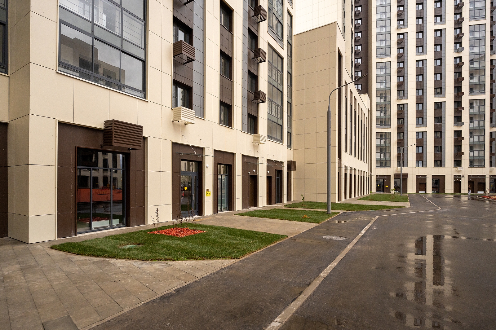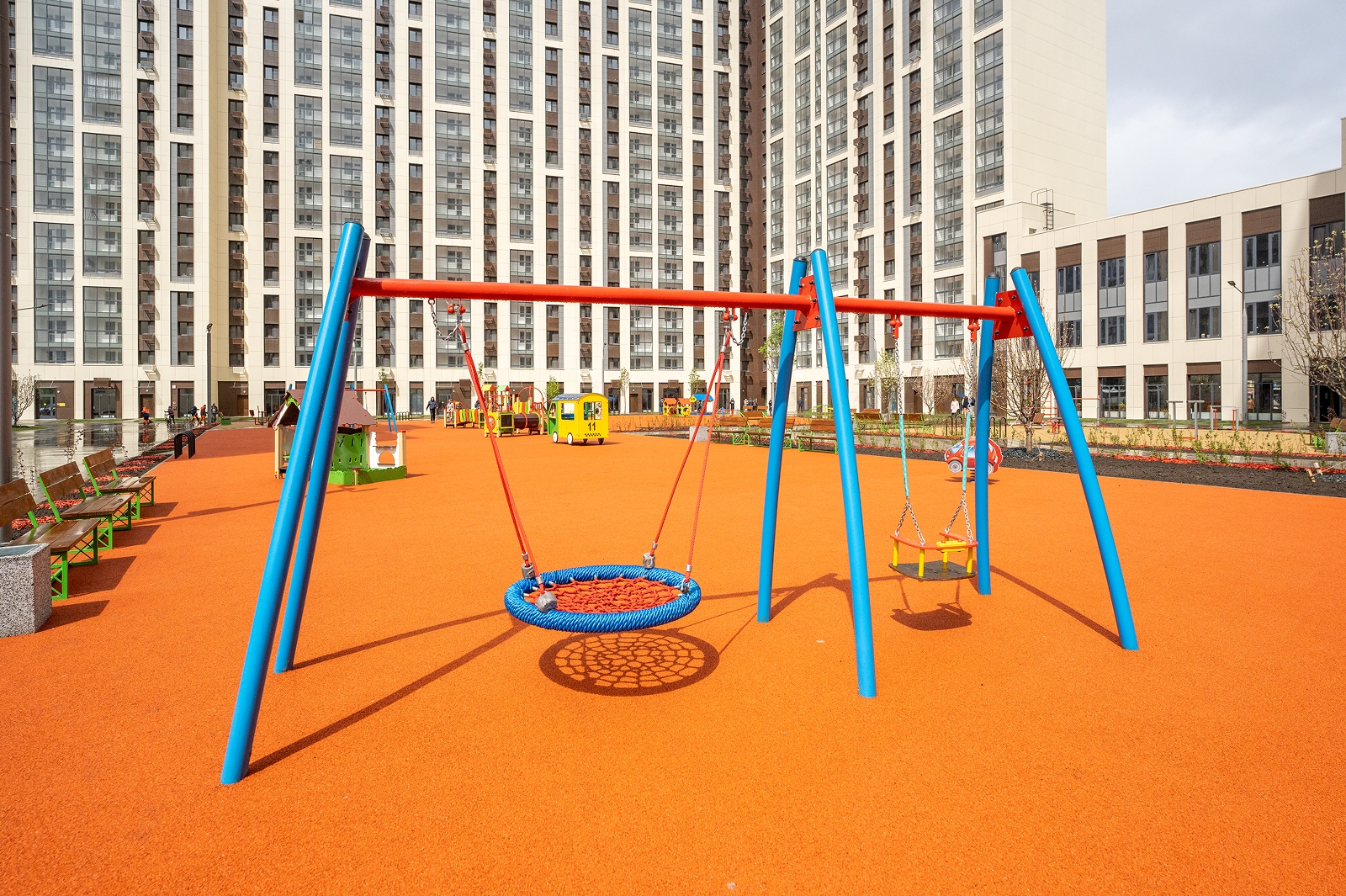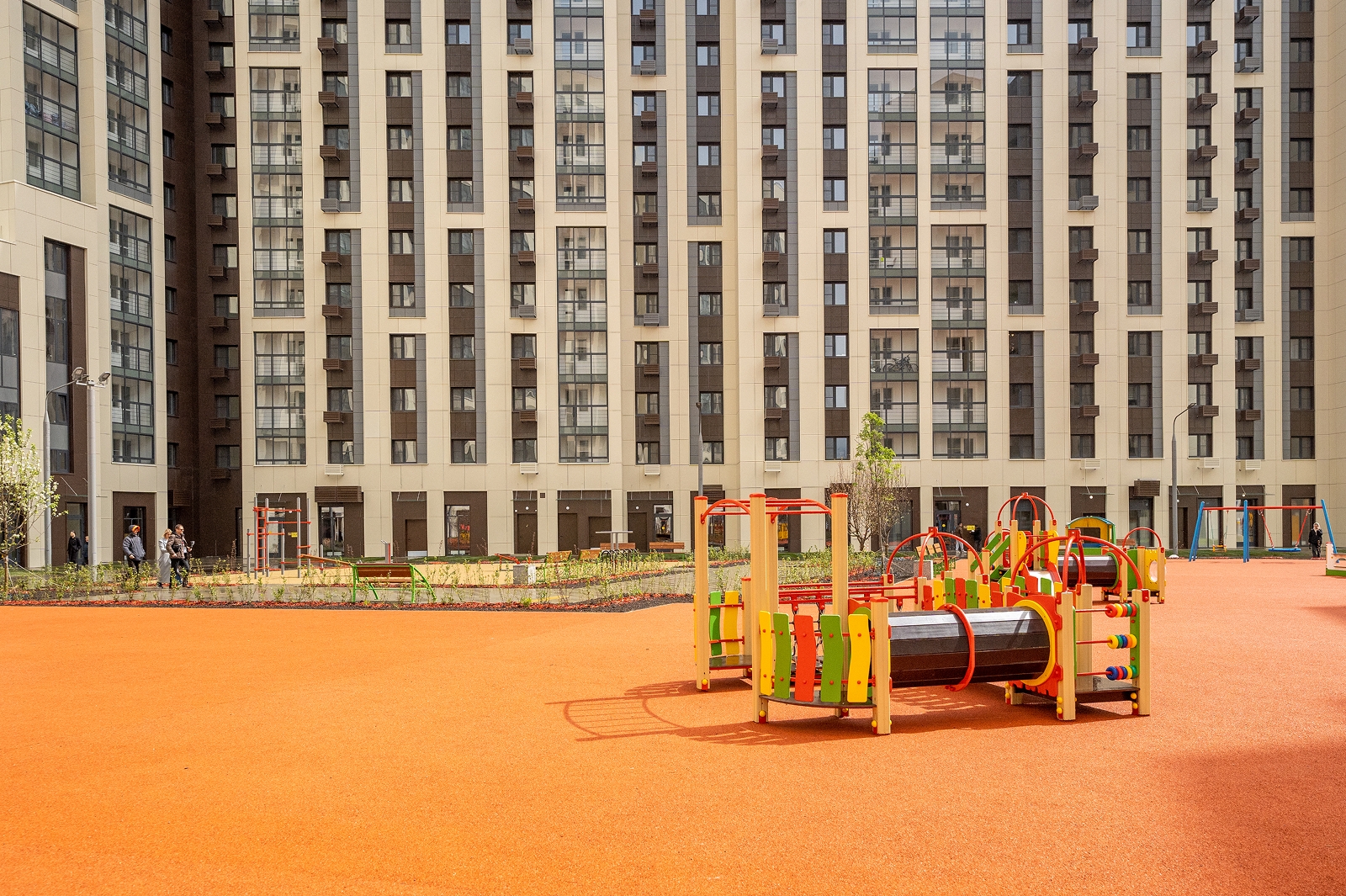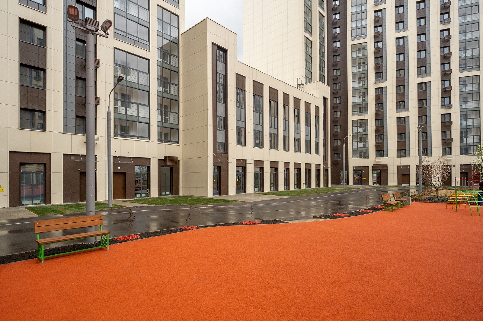 Территории возле современных жилых комплексов благоустроены: там высажены деревья и кустарники, обустроены газоны и цветники, оборудованы детские и спортивные площадки для досуга горожан.