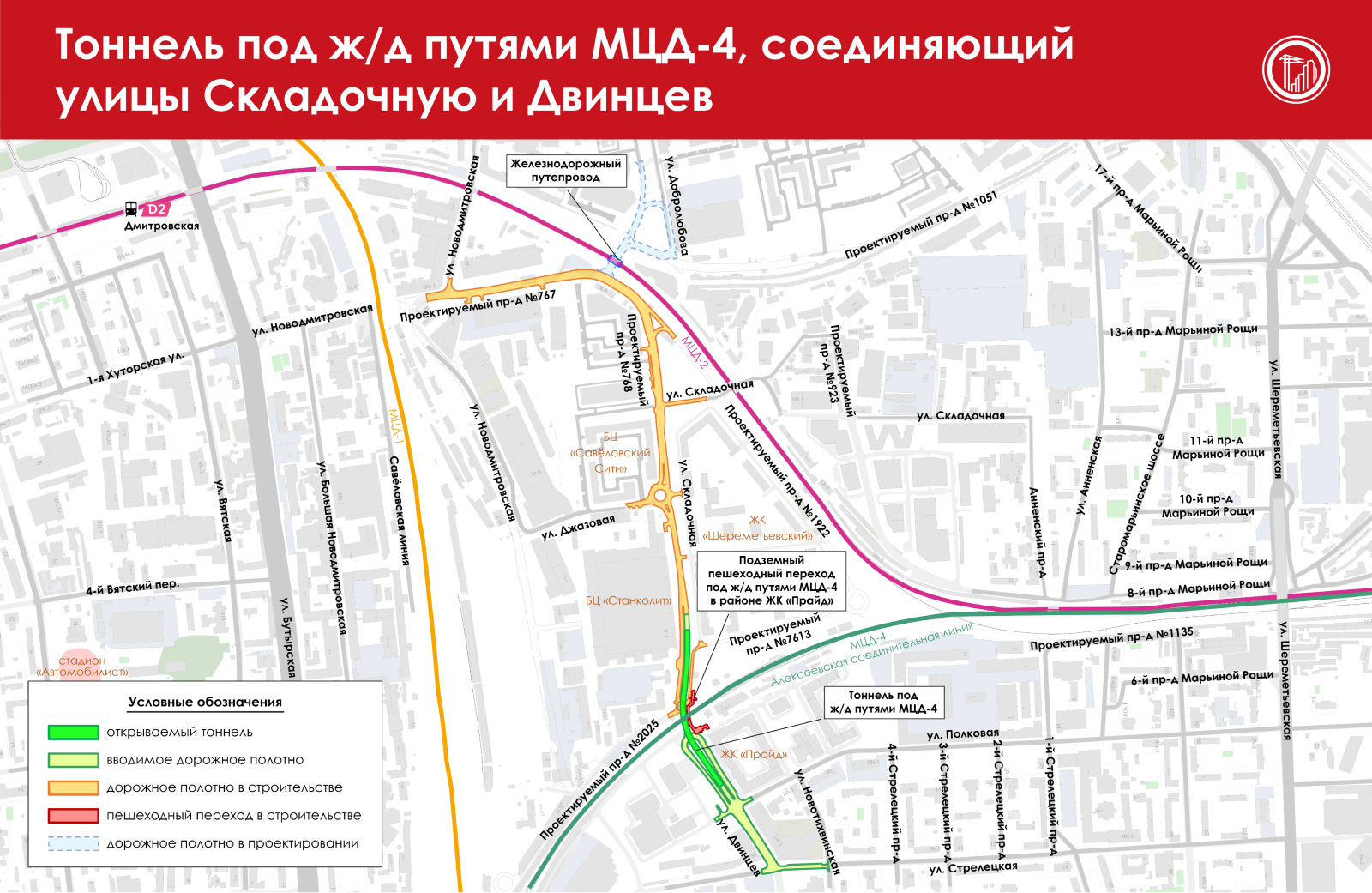 Специалисты приступают к строительству и реконструкции улично-дорожной сети в рамках проекта железнодорожного путепровода, соединяющего ул. Добролюбова и Складочная на северо-востоке столицы, сообщил руководитель Департамента строительства транспортной и инженерной инфраструктуры Москвы Василий Десятков.
