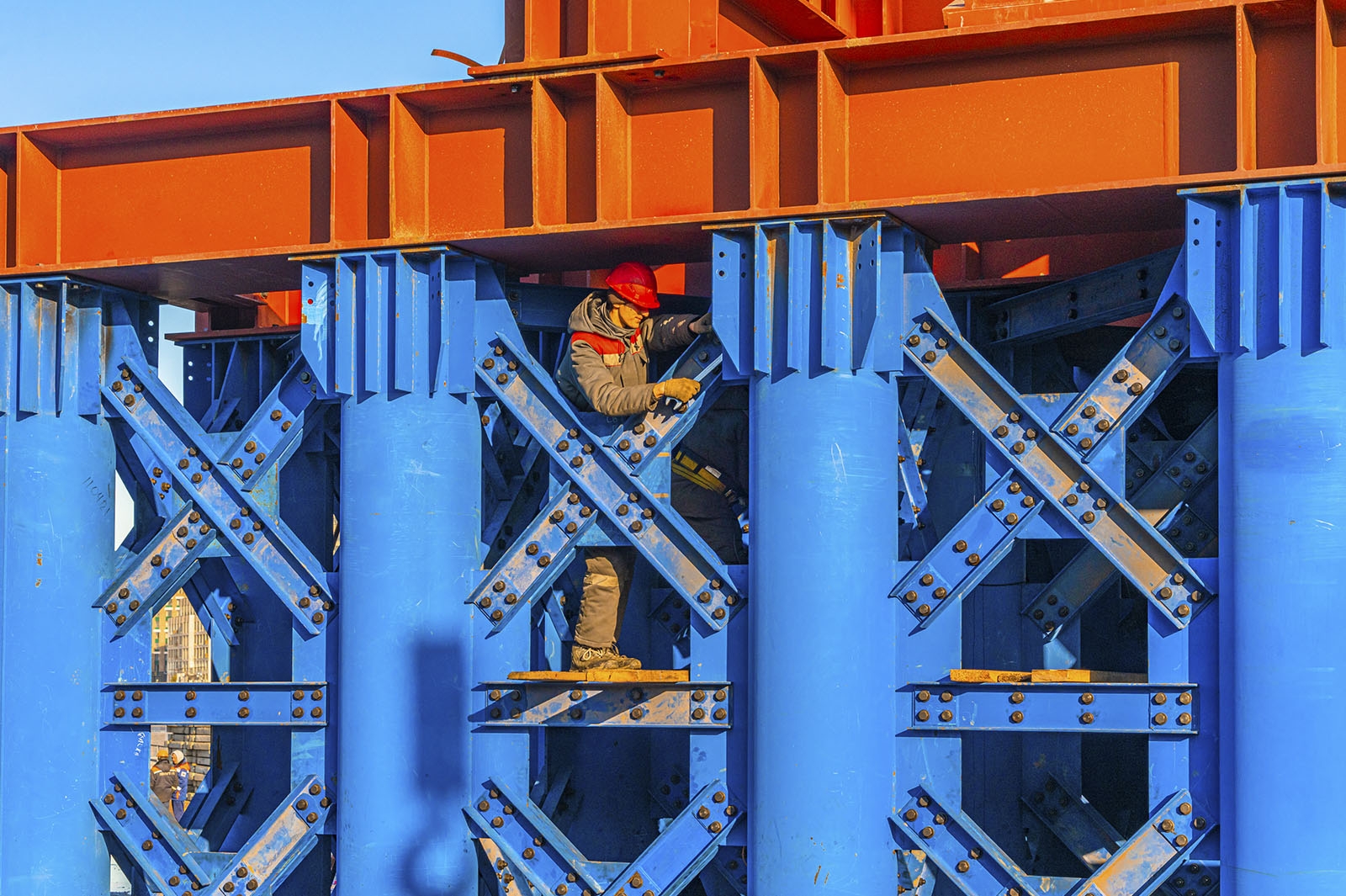Руководитель группы компаний «Мосинжпроект» (генеральный подрядчик по строительству объекта) добавил, что параллельно ведется монтаж металлоконструкций временной опоры, которая примет нагрузку при надвижке пролетного строения.