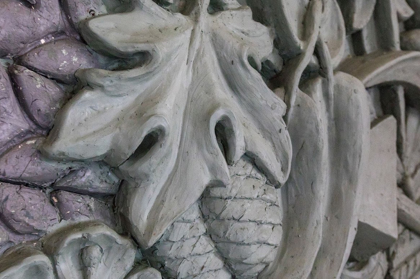 В павильоне №34 «Космос» восстановили уникальный стеклянный купол и скульптурную группу на крыше здания, воссоздали гипсовый лепной декор на фасадах и в интерьерах, облицевали колонны цветным мрамором.