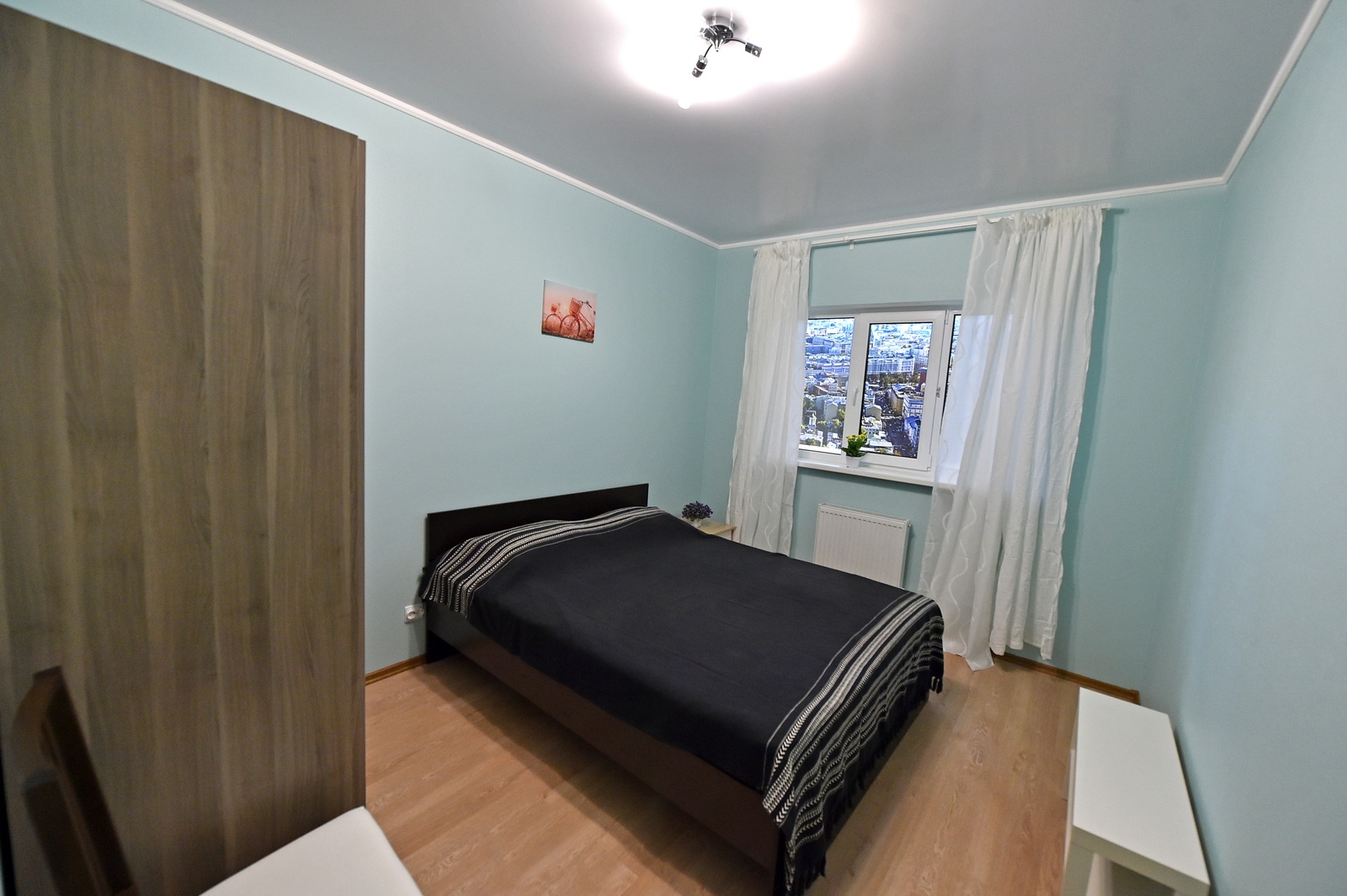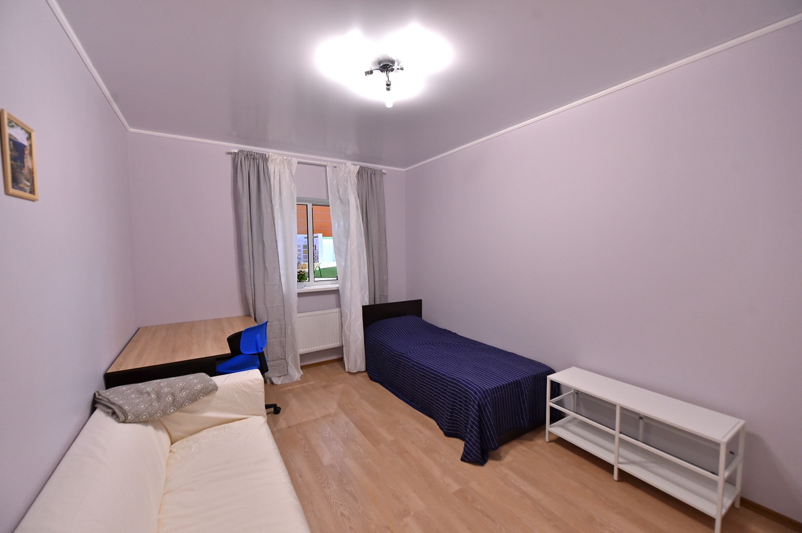 На импровизированной лестничной клетке представлено четыре квартиры - однокомнатная, две «двушки» и трехкомнатная. В каждой из них будут изолированные комнаты, просторный коридор, большая кухня и раздельные санузлы.