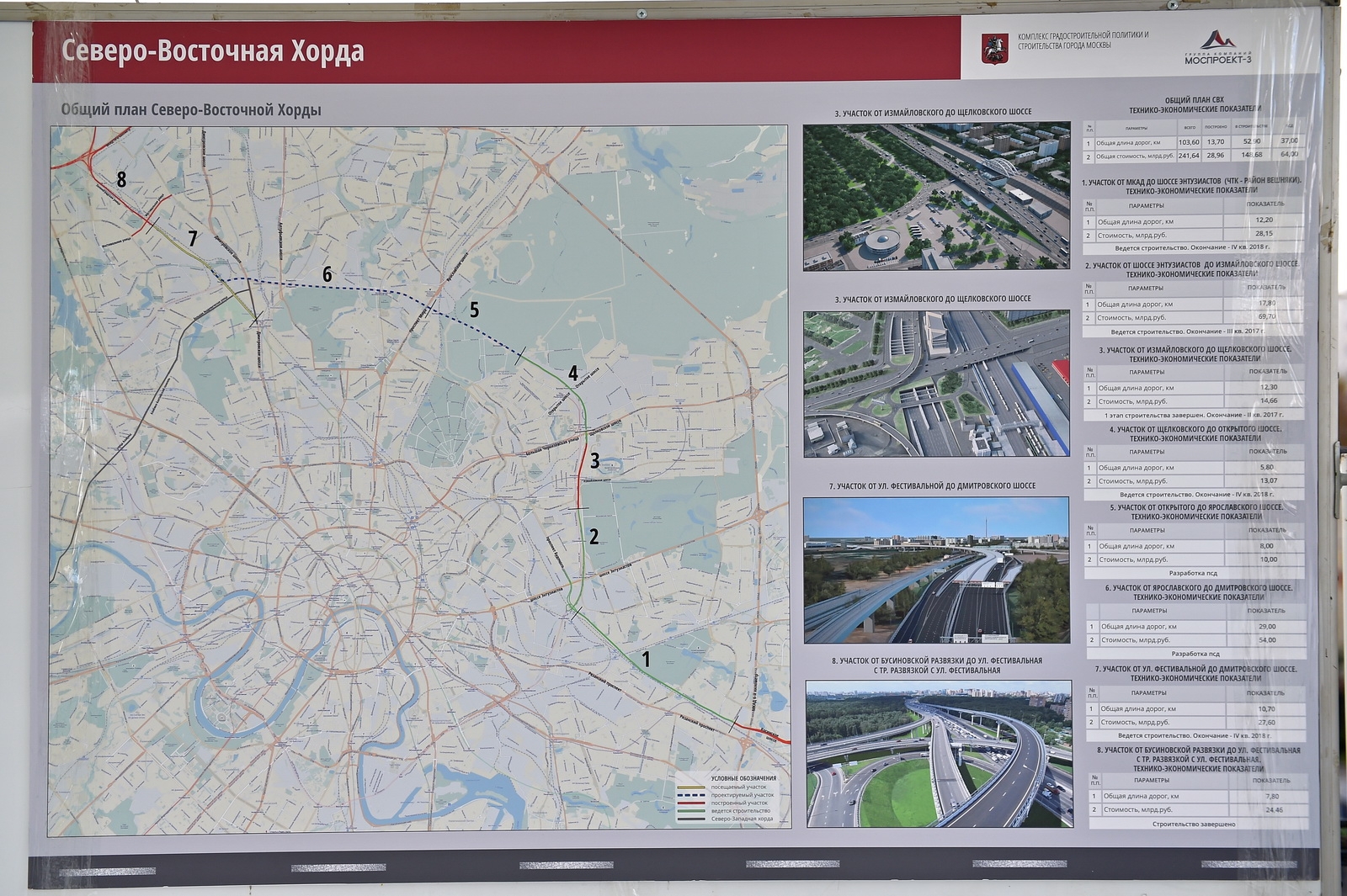 Как ранее сообщил заместитель мэра Москвы по градостроительной политике и строительству Марат Хуснуллин, основные работы по строительству Северо-Восточной хорды планируется завершить к концу 2018 - началу 2019 года.