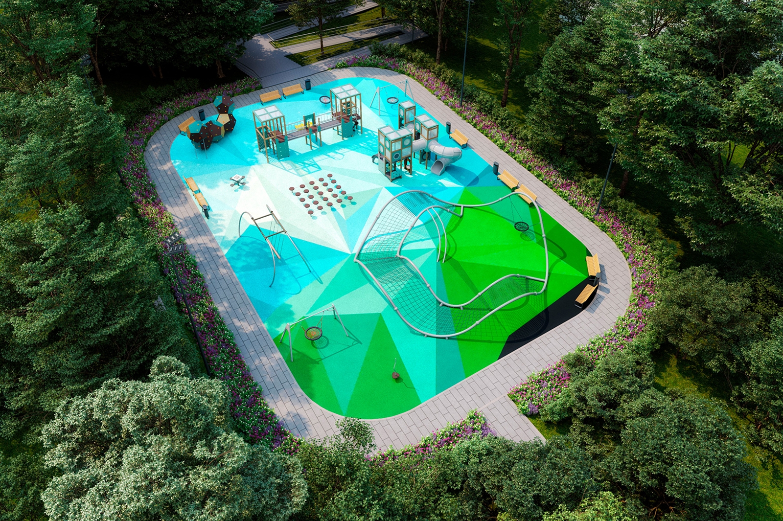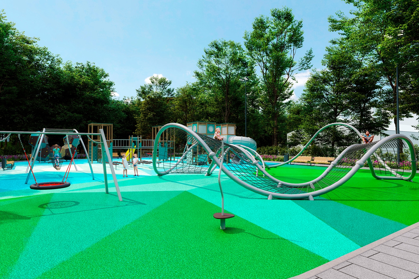 Глава города добавил, что старую заброшенную хоккейную коробку планируется превратить в игровую зону для детей старше семи лет, а для родителей обустроят места для отдыха. У входа на территорию с восточной стороны появится зона отдыха с цветниками, под деревьями и навесами разместят парковые качели и скамейки.