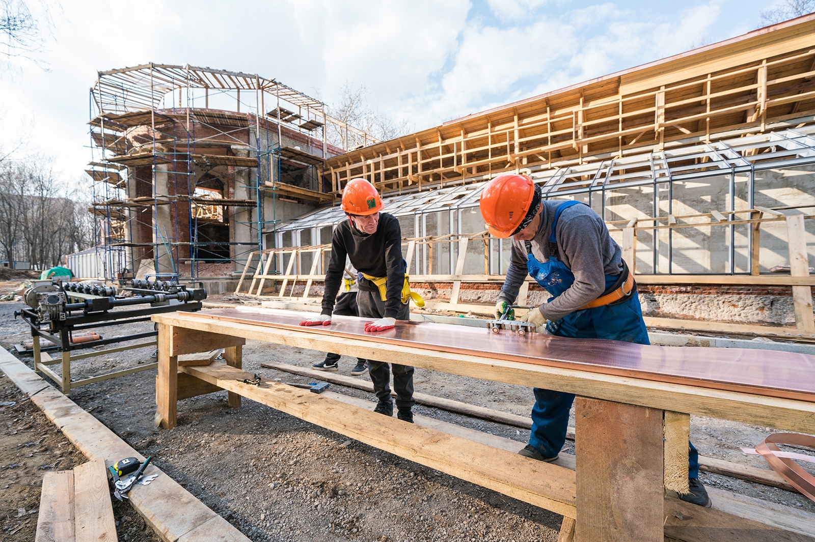 заменены потолочные балки из дерева, возвращено медное покрытие кровли.