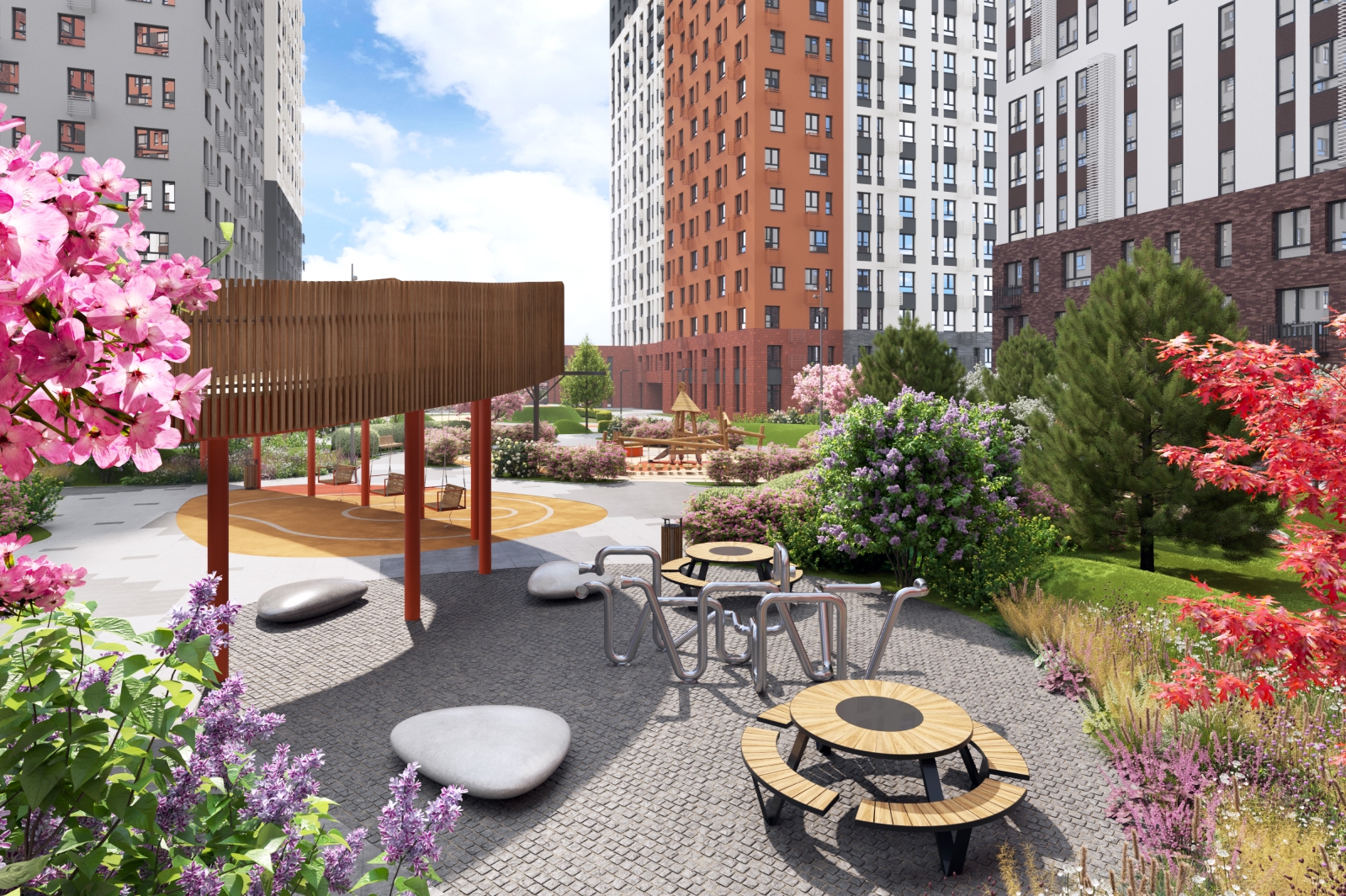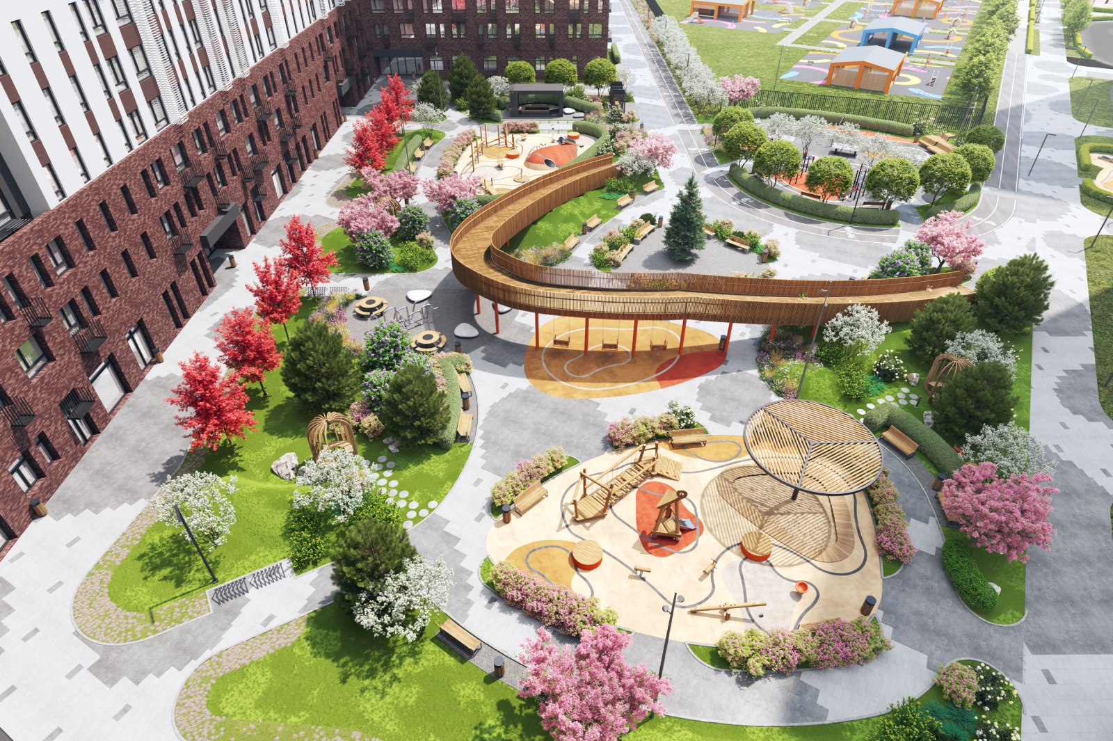 Сад камней, круглые качели и деревянный мост появятся около новых корпусов ЖК «Первый Московский»