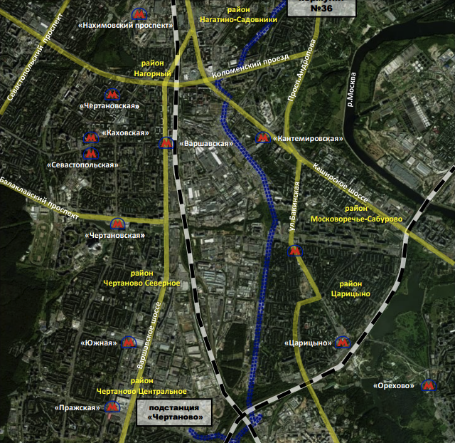 Кабельно-воздушная линия 110 кВ проходит через семь районов столицы: Бирюлево Западное, Царицыно, Нагатино-Садовники, Бирюлево Восточное, Москворечье-Сабурово, Чертаново Центральное, Даниловский.