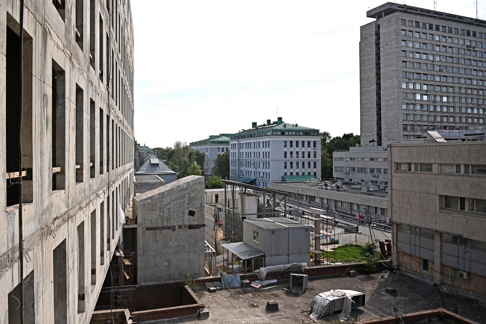 В скоропомощном комплексе расположится шесть разнопрофильных операционных, в том числе гибридная нейрохирургическая операционная с МРТ и ангиографическая операционная с передвижным КТ. Застройщиком выступает АНО «РСИ».