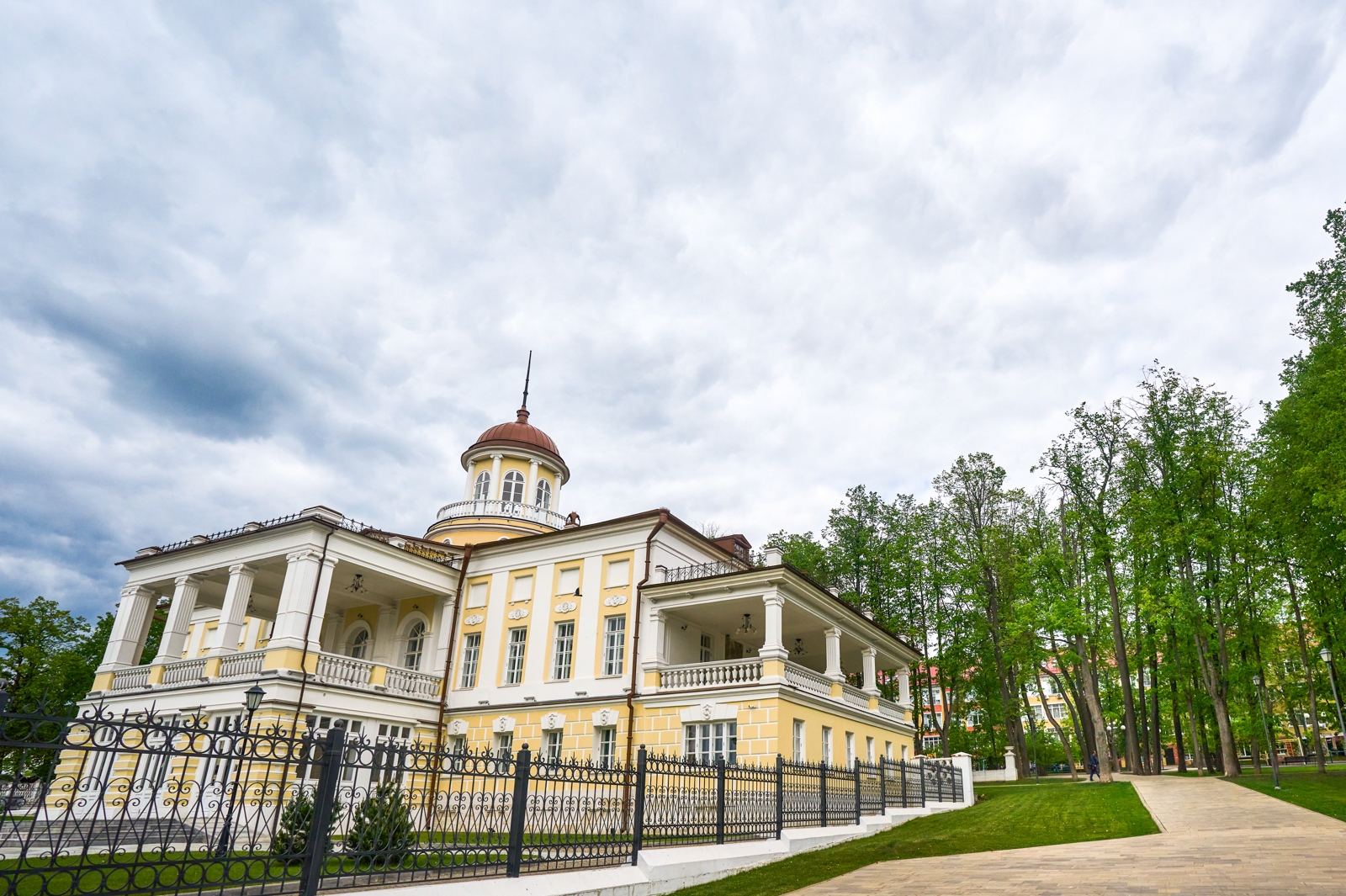 В парке есть зоны отдыха с беседками, пешеходные дорожки, детские и спортивные площадки. При благоустройстве сохранили исторический облик усадьбы с въездными воротами и частью каменного забора.