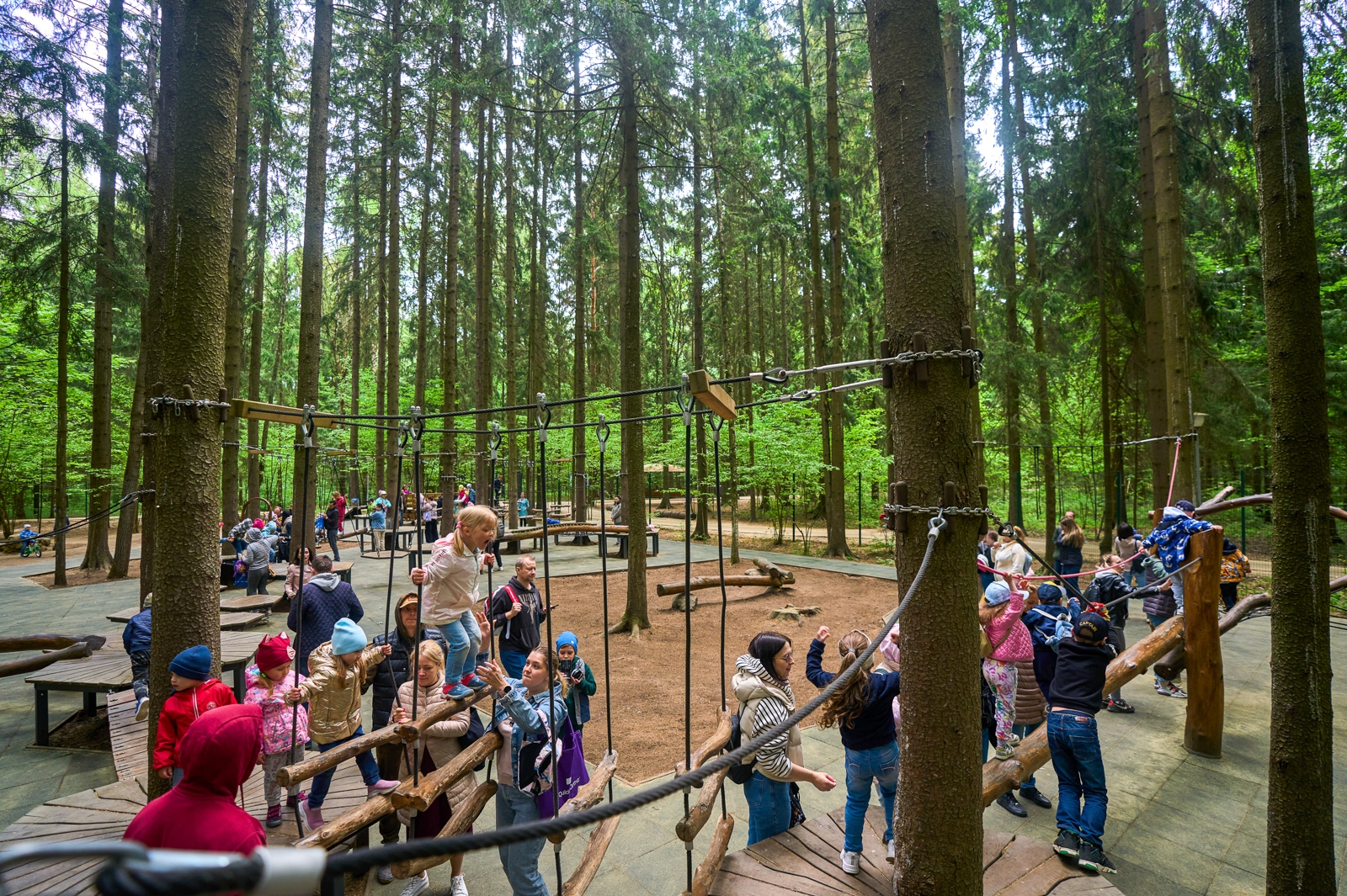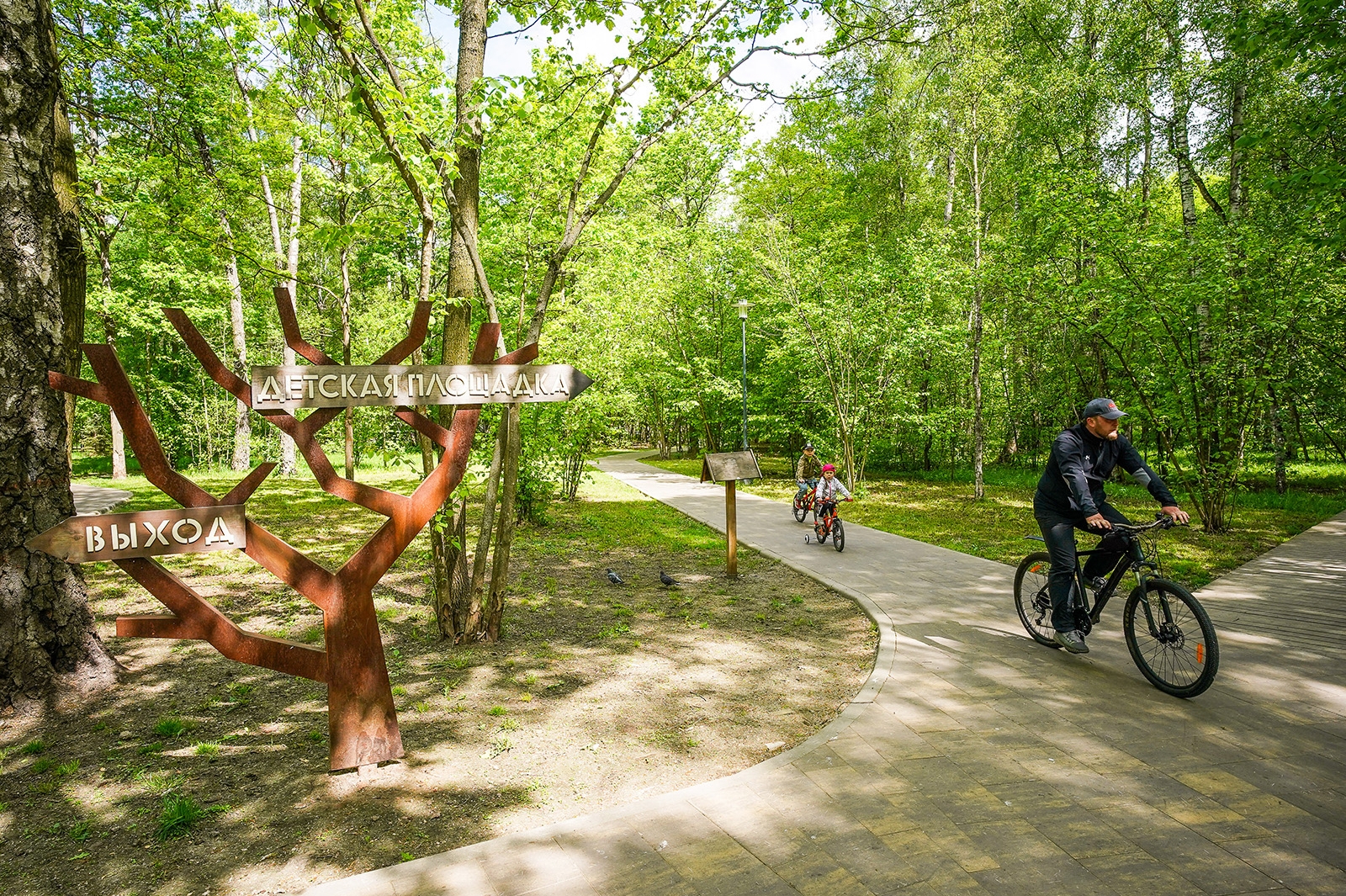 В тени хвойных и лиственных деревьев можно покататься на велосипедах и самокатах, отдохнуть в необычных беседках, покормить белок и понаблюдать за лесными обитателями. Зимой по всем прогулочным дорожкам проходят лыжные маршруты.