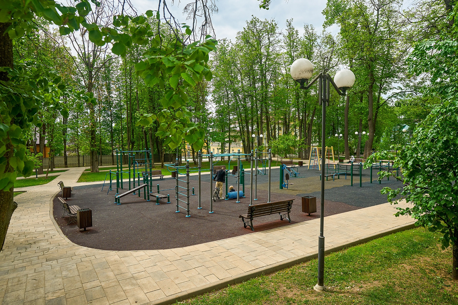 Для любителей активного отдыха в парке оборудовали памп-трек, площадки для воркаута, установили столы для пинг-понга и проложили велодорожку.