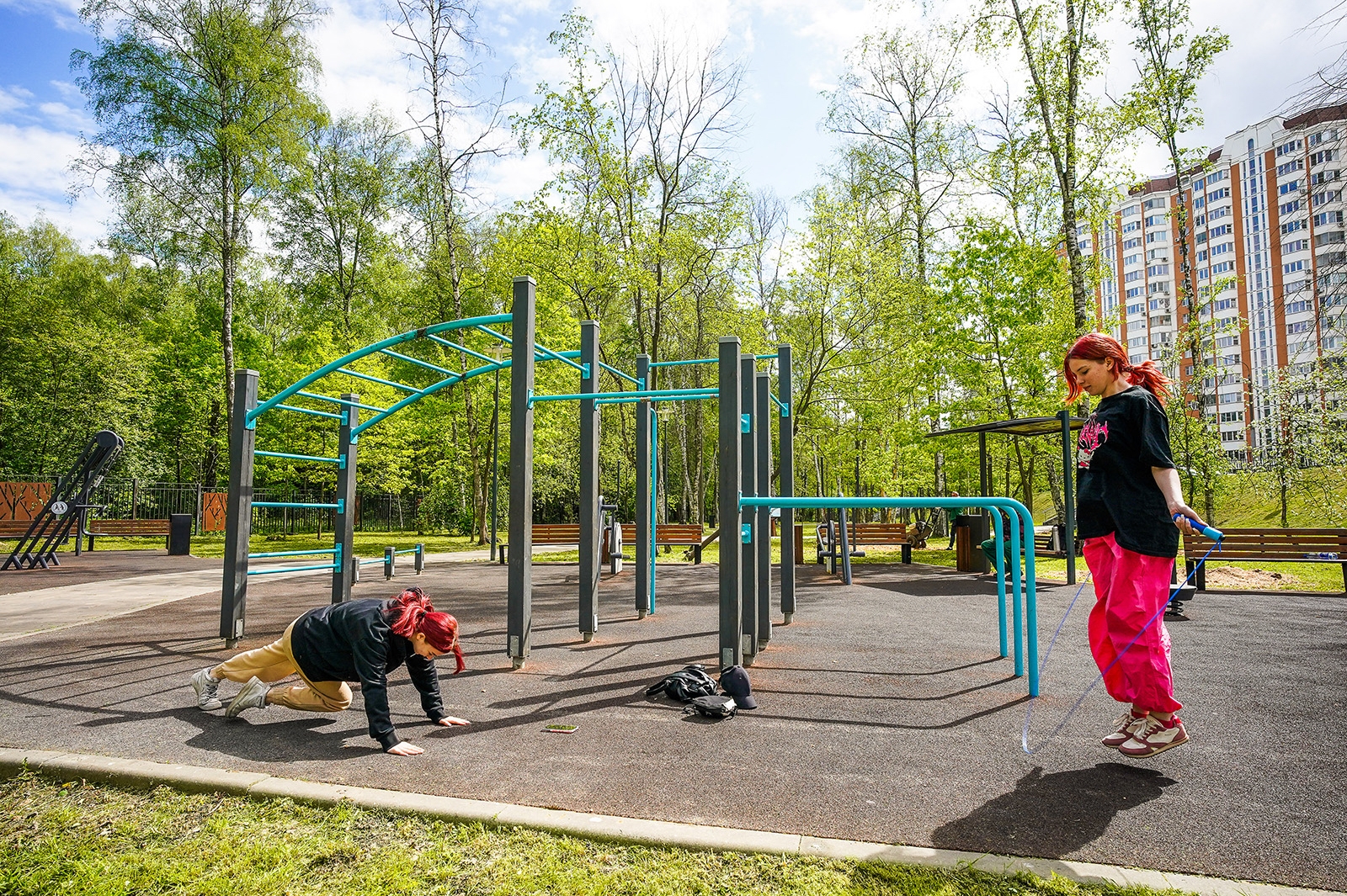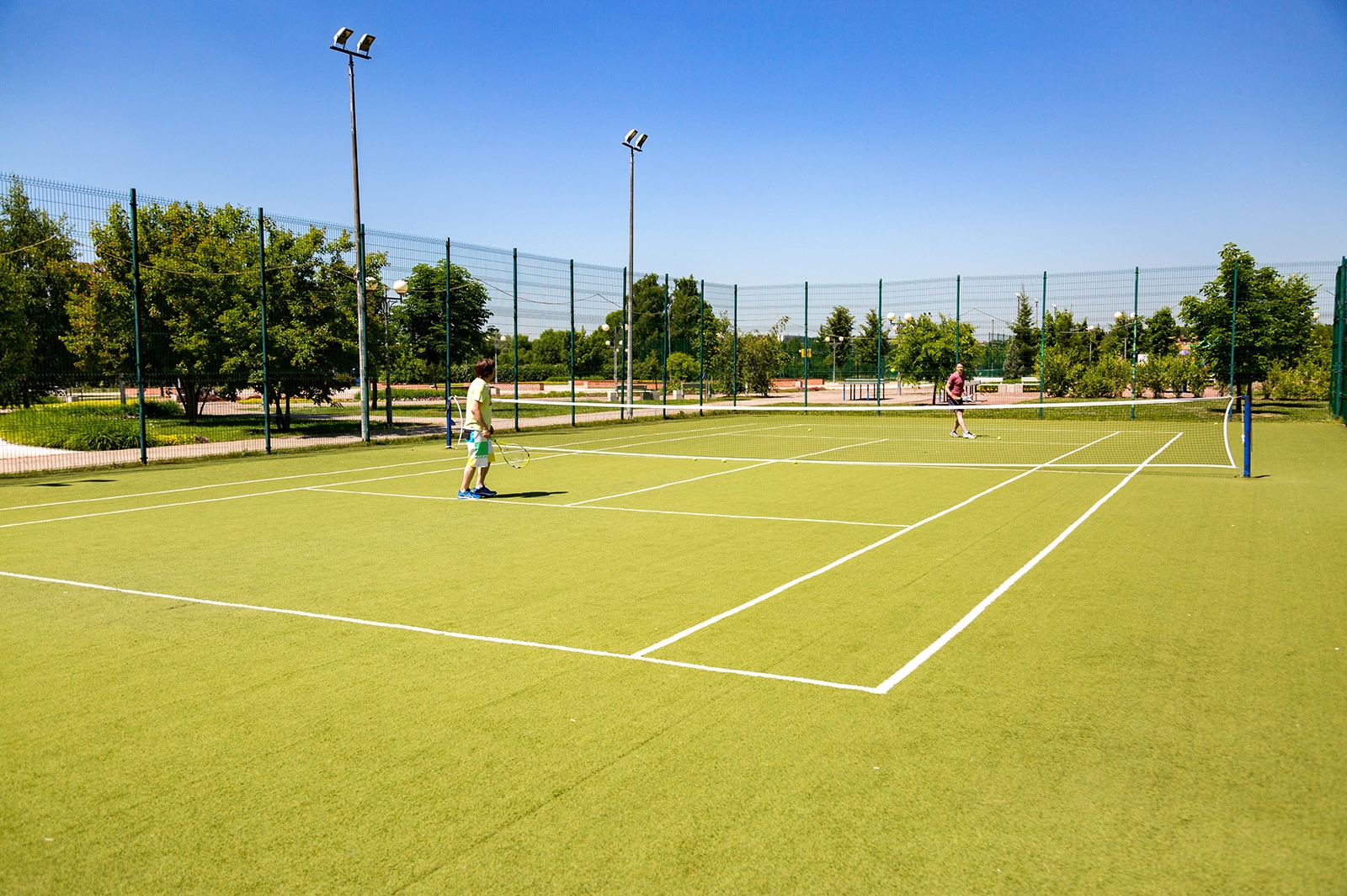 Для любителей спорта в парке есть футбольное поле, волейбольная площадка, зоны для силовых и кардиоупражнений и другие элементы.