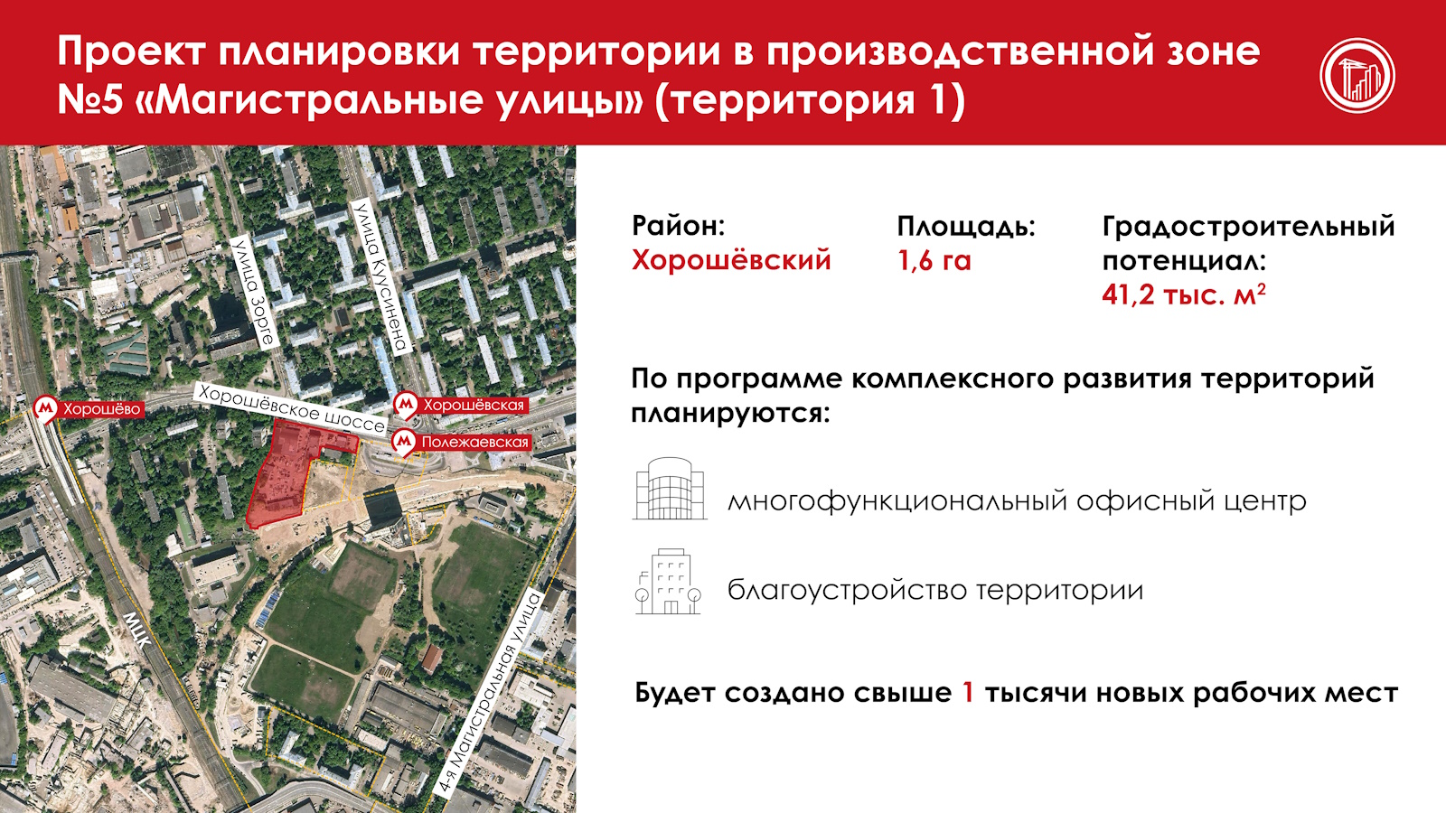 «Изменения коснутся территории площадью 1,6 га рядом со станцией метро «Полежаевская». Вместо устаревших объектов построим многофункциональный офисный центр с подземным паркингом, отделениями банков, кафе и магазинами. Запланированы также работы по благоустройству и озеленению участка», – написал Сергей Собянин в своем телеграм-канале.