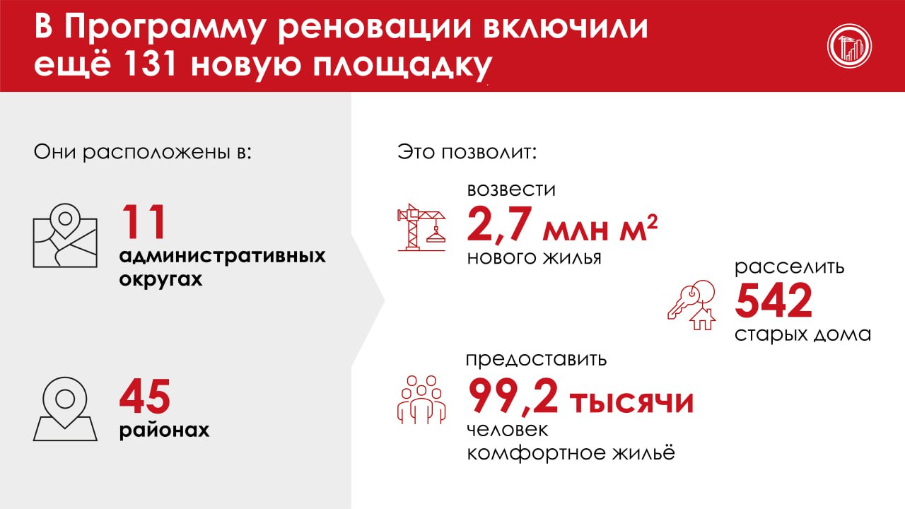 Собянин: еще 131 площадку для строительства домов по реновации включили в программу